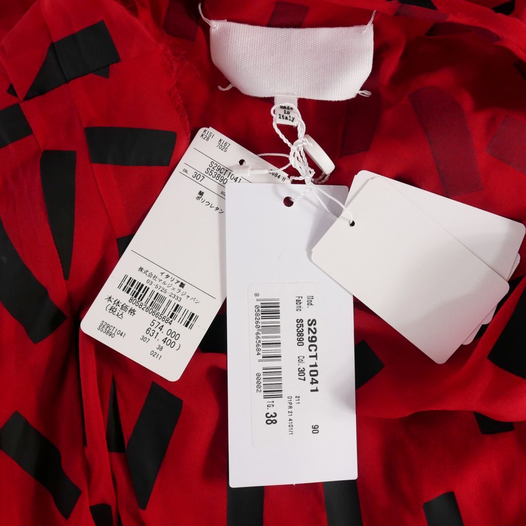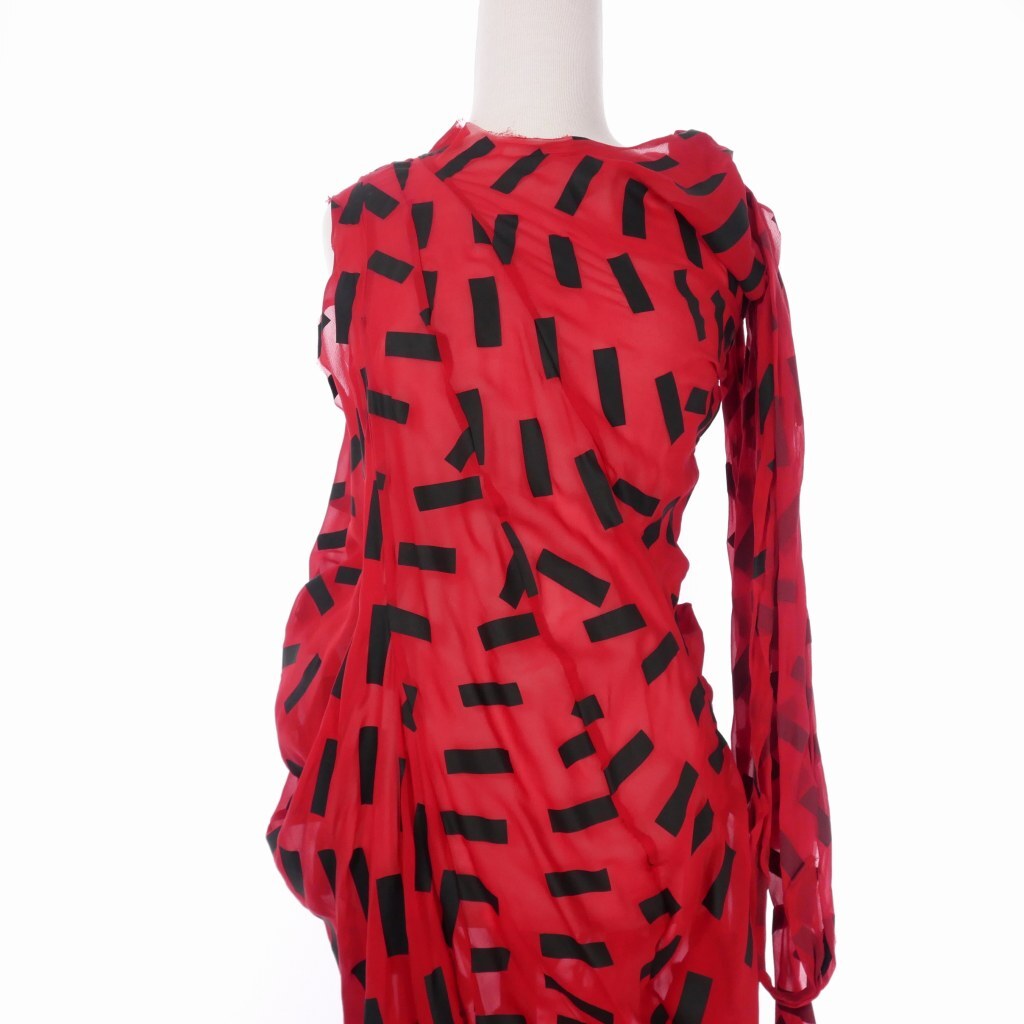 未使用品 メゾンマルジェラ Maison Margiela 白タグ 21SS Co-Ed ドレープ ノースリーブ ロング ドレス ワンピース 総柄 38 赤 レッド
