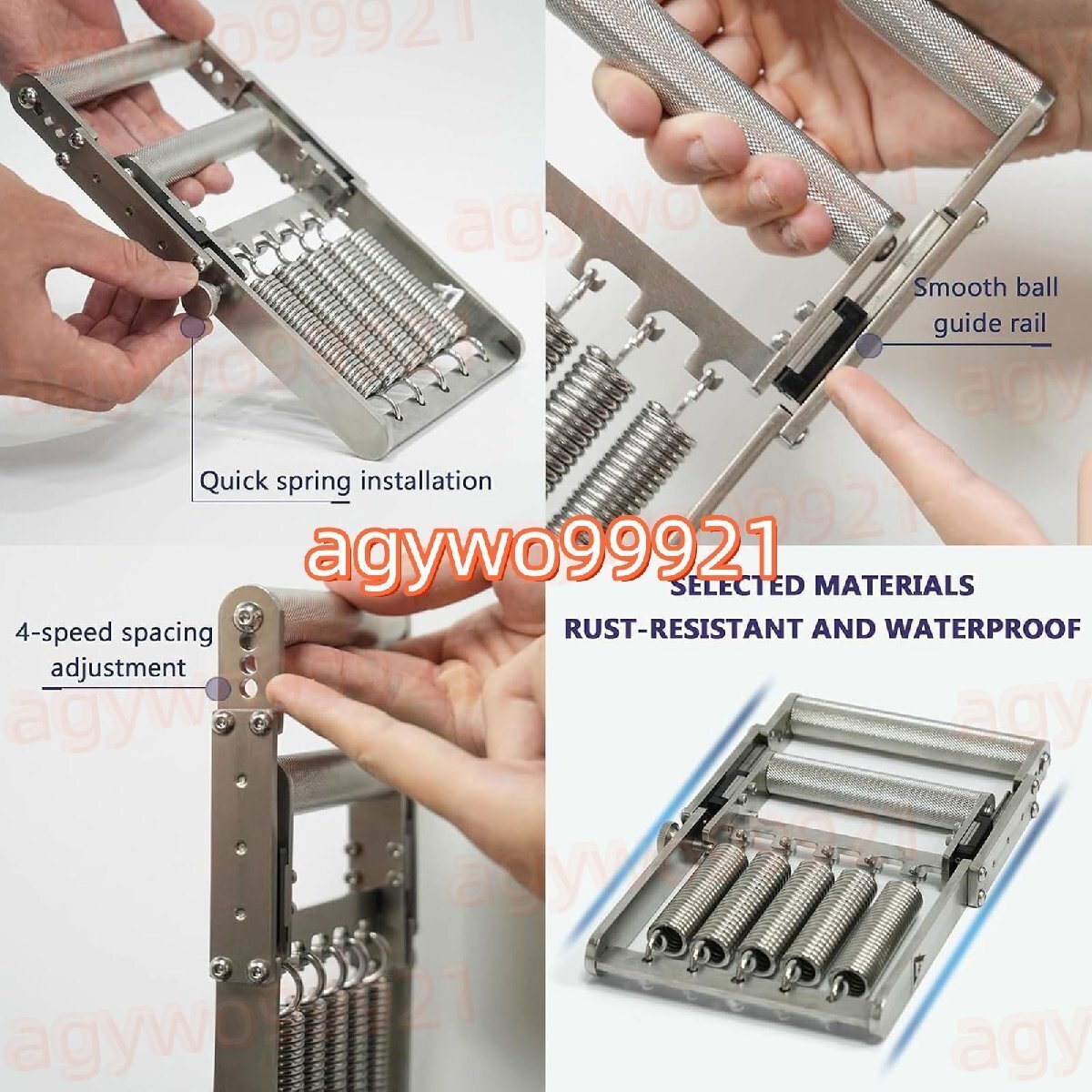 調整可能:このグリッパーは5つのステンレススチール製スプリング(30kgスプリング3個、15kgスプリング2個)を備えており、ユーザーは必要に応じて強度を調整できるため、あらゆる筋力レベルのユーザーの毎日のトレーニングに適しています。