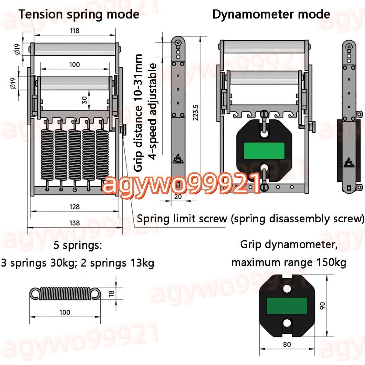調整可能:このグリッパーは5つのステンレススチール製スプリング(30kgスプリング3個、15kgスプリング2個)を備えており、ユーザーは必要に応じて強度を調整できるため、あらゆる筋力レベルのユーザーの毎日のトレーニングに適しています。 ダイナモメーター:高精度のひずみ