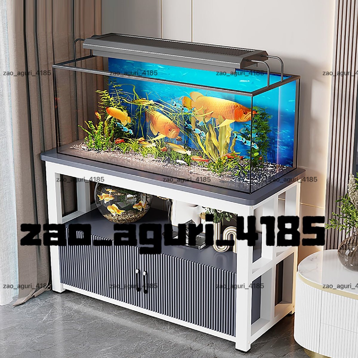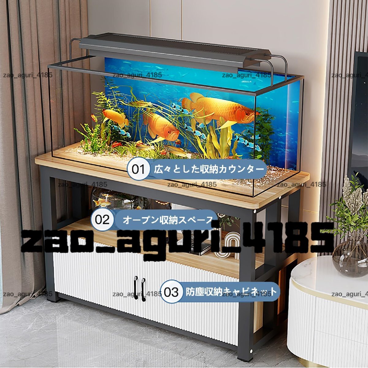 【大容量収納】水槽スタンドは上部と下部に広々とした収納スペースがあり、下部のロッカーにはメンテナンスツールを収納でき、ラインを整理したり、水槽内を整理したりするのに便利です。