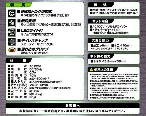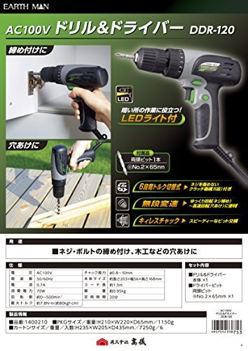 【おすすめ】 EARTH 高儀 AC100V ドリル&ドライバー MAN DDR-120