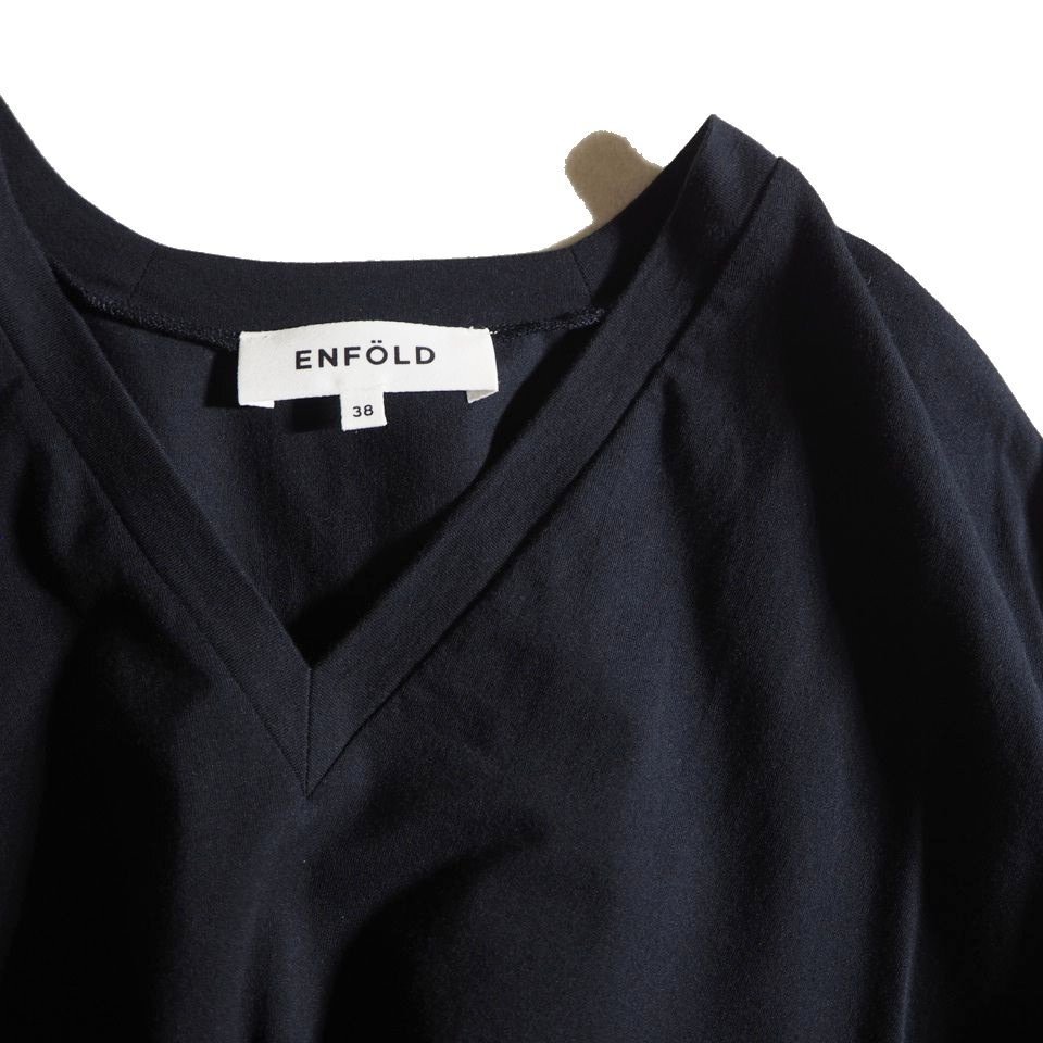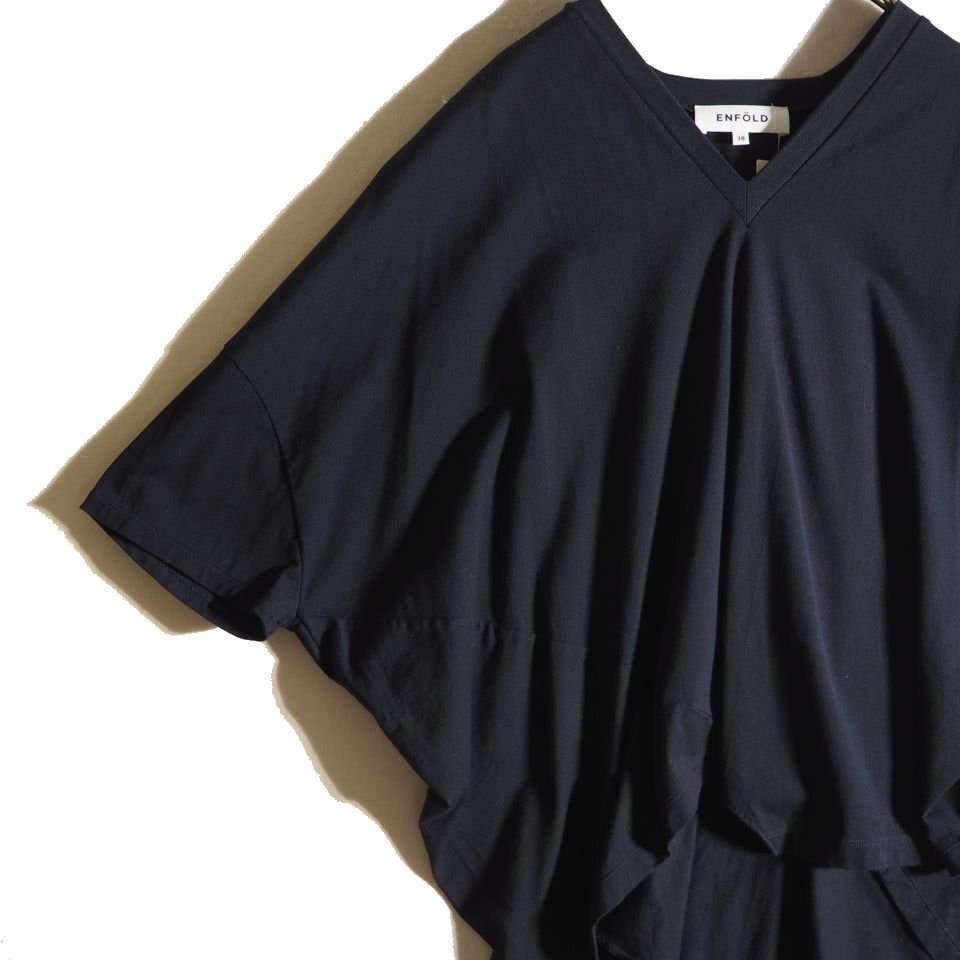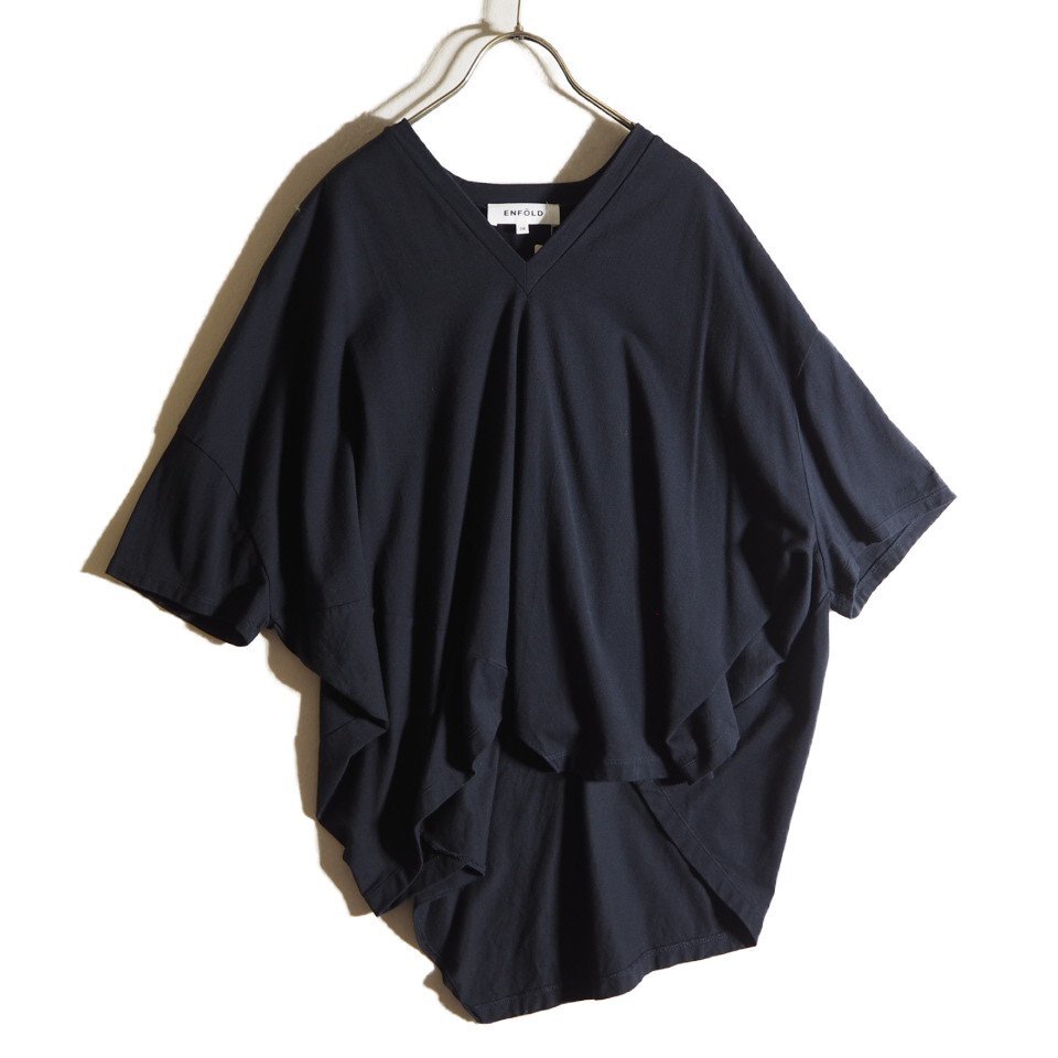 U4915f9 ▼ENFOLD エンフォルド▼ ライトディオラマ天竺 アシンメT/SH Tシャツ ネイビー 38 / コットン カットソー 紺 春夏