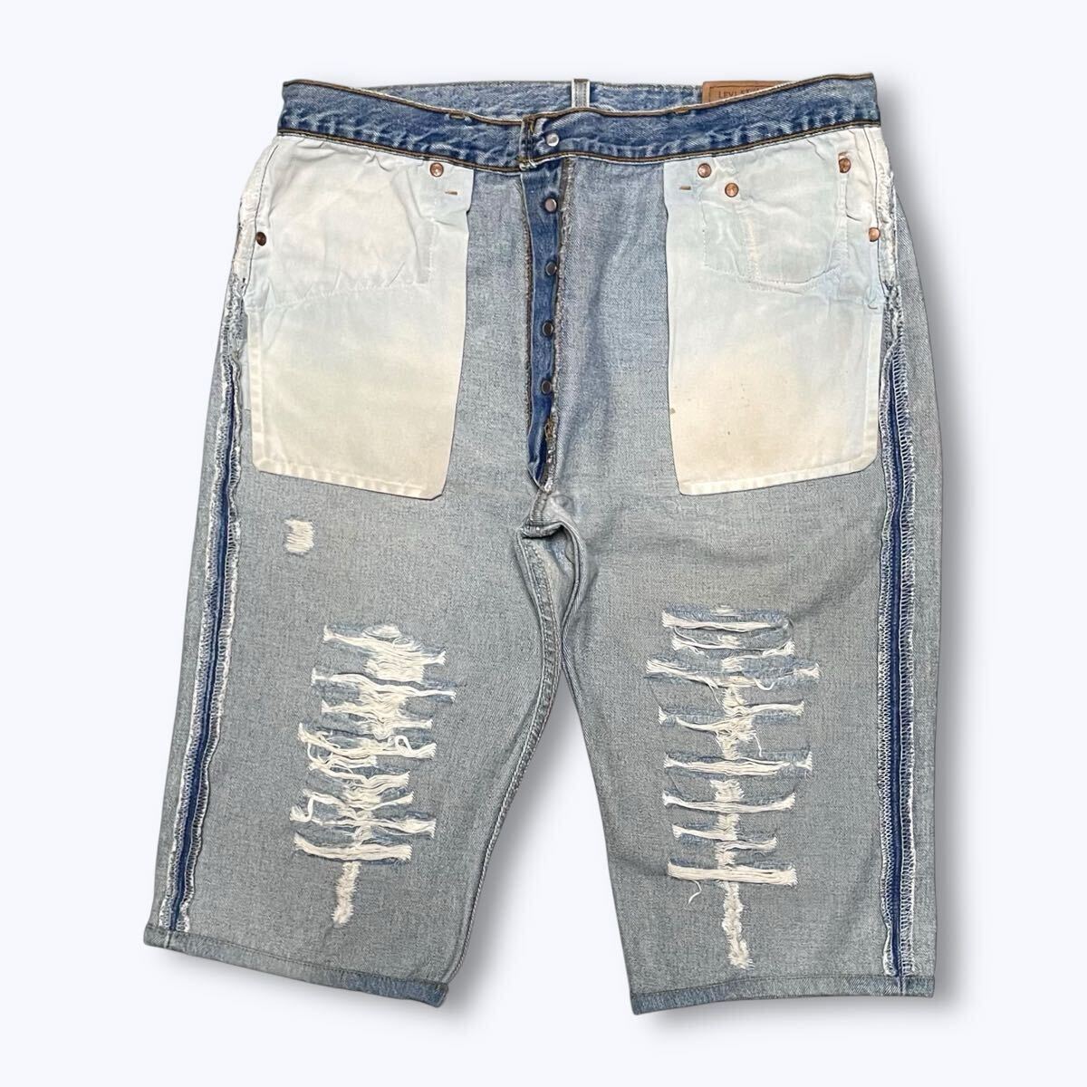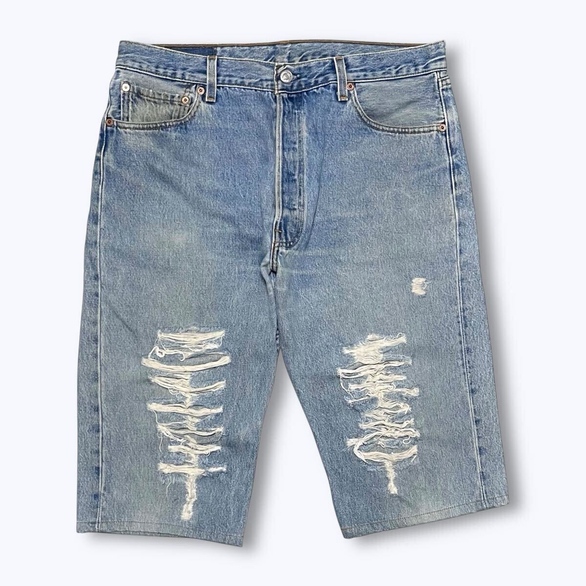 90年代リーバイスのデニムをベースに、90年代当時流行したクラッシュ加工で仕上げた希少なヴィンテージデニムショーツ。