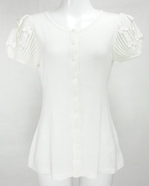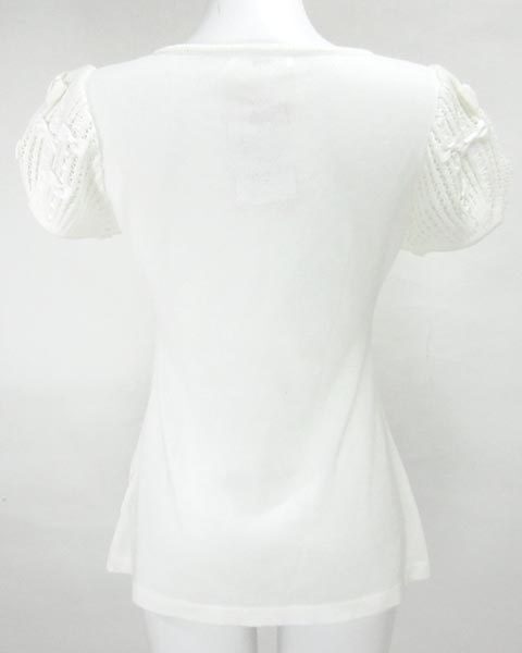 清楚で大人可愛いコーデを叶えるカーディガン袖部分は透かし編みになっており、その上にはグログランリボンやサテンリボンがあしらわれております。リボン装飾の縫いつけが一部あまくなっていますが、タグ付き未使用品です。お丈が長めなので気になるお腹周りやヒップ周りをカバーしてくれます。 |