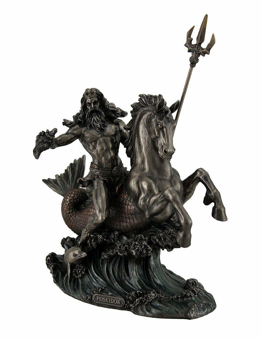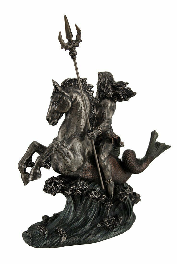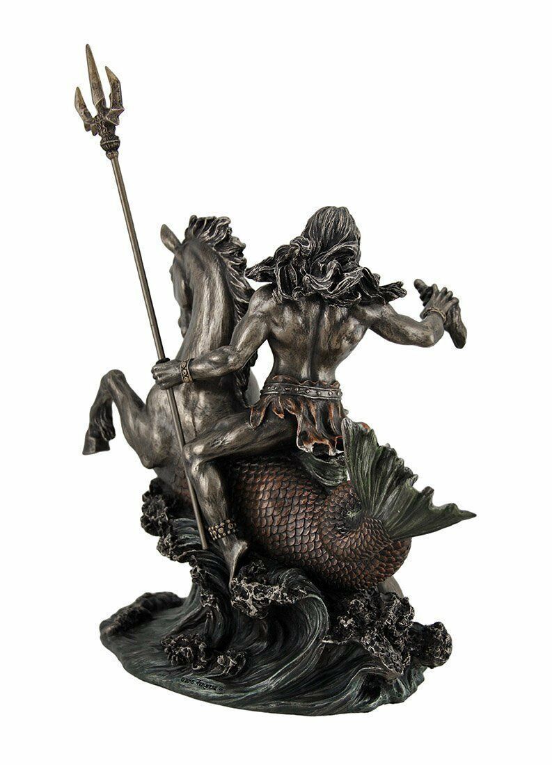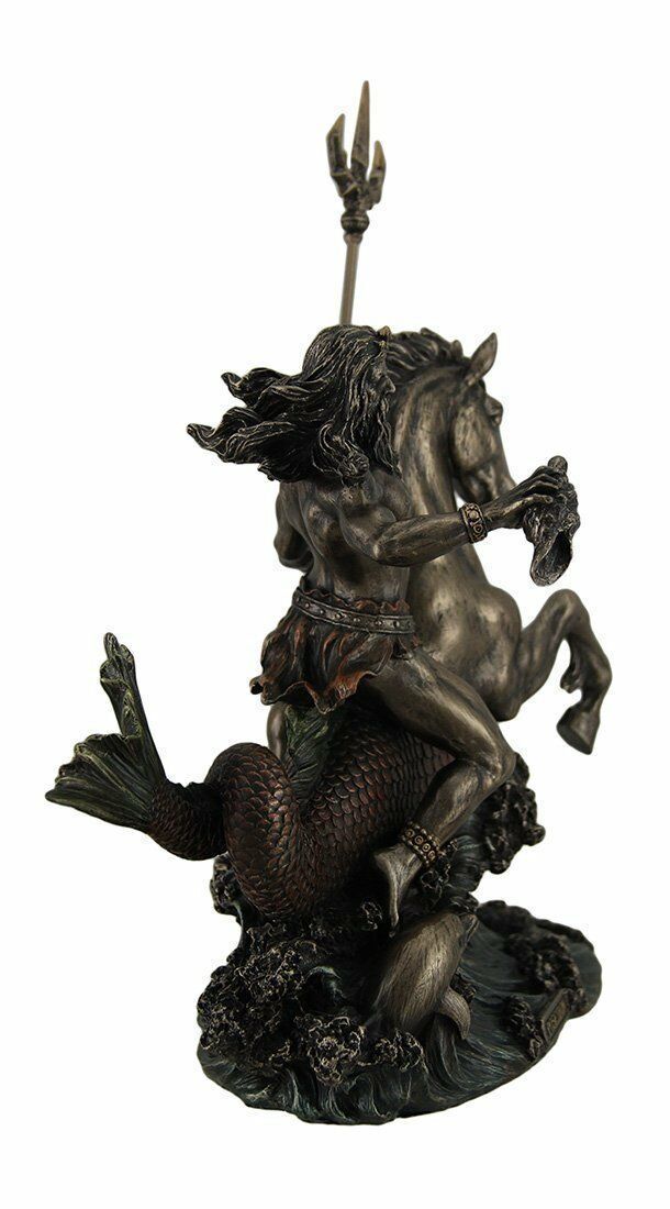 セール!即納!【トライデント(三叉鉾)を持って、海馬に乗った、ポセイドン ブロンズ風 彫像 置物 オリンポス 大洋 パルテノン神殿 エーゲ海(輸入品)】