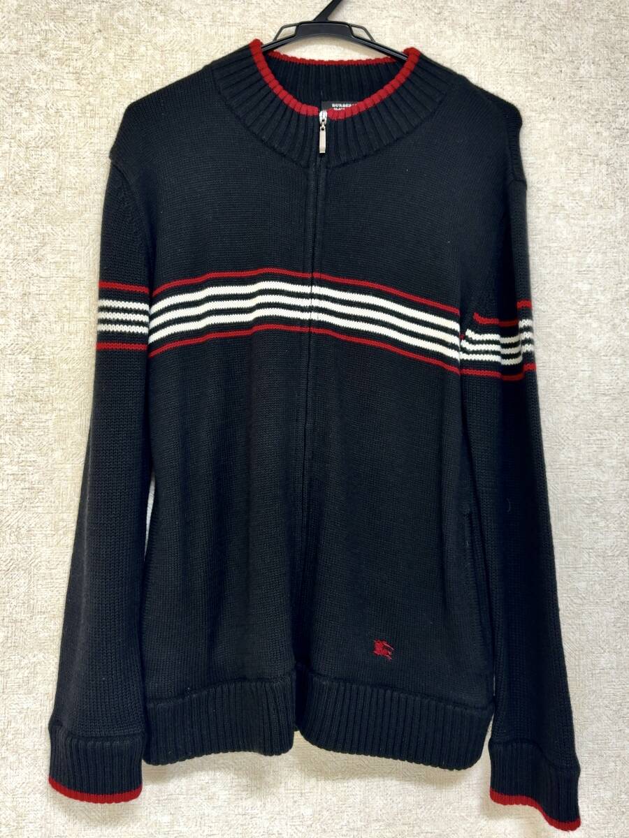 バーバリー・ブラック・レーベル ジップアップセーター Mサイズ ブラック