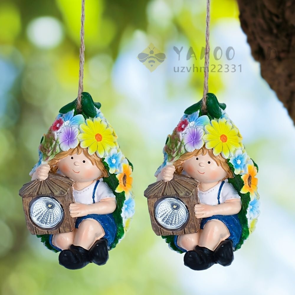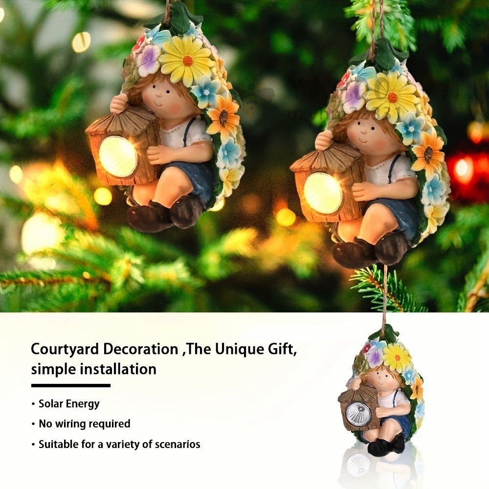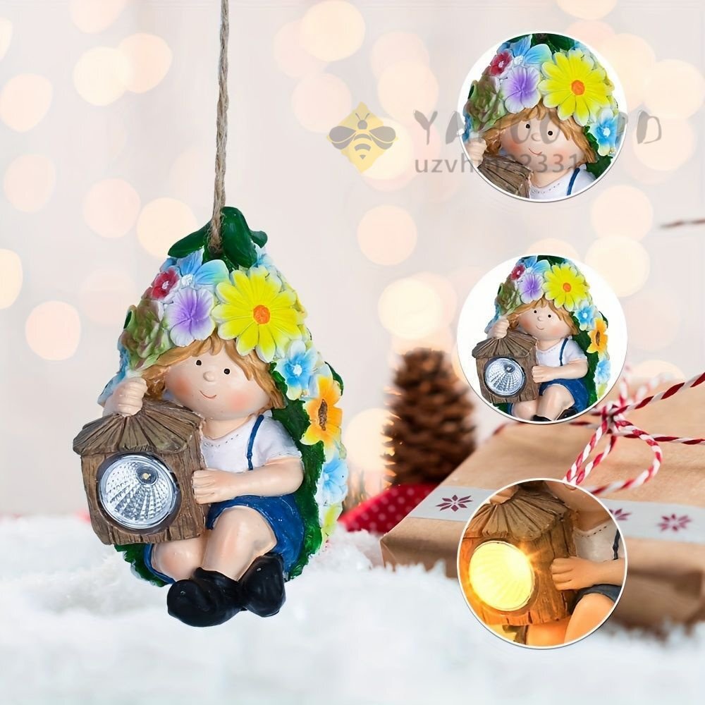 こちらの吊り下げソーラーライトは、可愛らしい少年のデザインが施されたガーデンオーナメントです。ミニサイズでありながら、お庭や玄関をおしゃれに演出します。昼間に太陽の光で充電され、夜には自動で美しい光を灯しますので、センサーの設定や電池の交換は必要ありません!