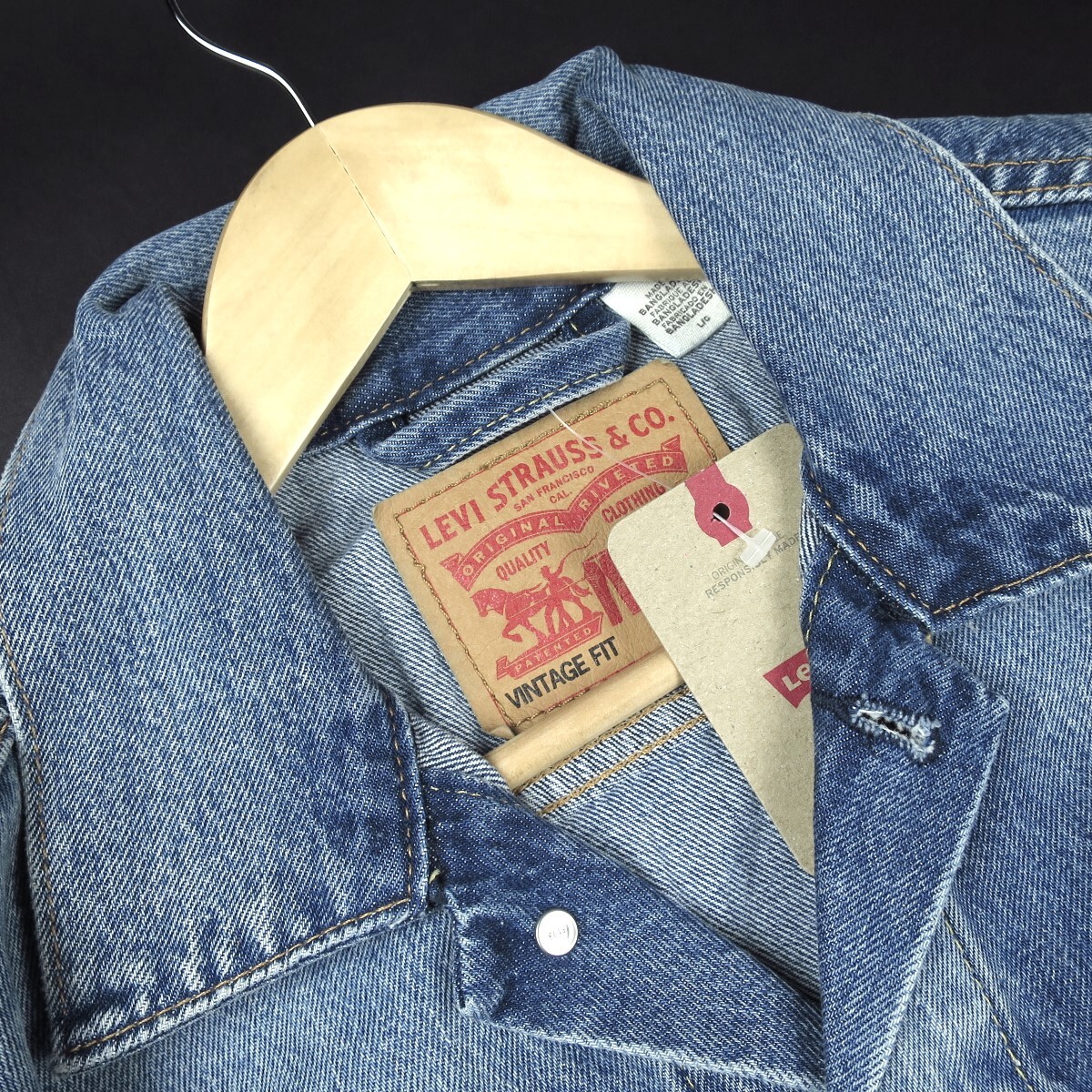 ■肩と袖にゆとりを持たせたボクシーなシルエットのVintage Fit トラッカージャケット。 ■季節や流行問わず長年着用できるようなデザインと、綿100%でしっかりとした生地感で何十年と愛用し、世代から世代へと受け継ぐにふさわしいアイテムです。 ■フロントに2つのポケット、両サイドにもポケットが施されているので機能性のあるデザイン。 ■ムラのあるリアルな色落ちやアタリが再現されたカラーリング。 ■幅広いスタイリングに合わせやすい一着です。 ■リラックスフィット ■ボタンフラップ胸ポケット ■ロングスリーブ ■メタルボタン ※レッドタブが『Levi's』のものと『R(レジスターマーク)』のみのものと2種類ございます。 約10分の1の確率でR(レジスターマーク)が混在するため、一部マニアの間ではレア感があるとも言われていますが 落札の際にお選びいただくことはできません。予めご了承ください。 |