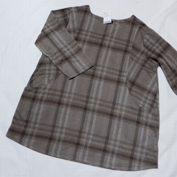 GLISSE 4L ジャガードチェック柄 長袖 チュニック モカ 大きいサイズ