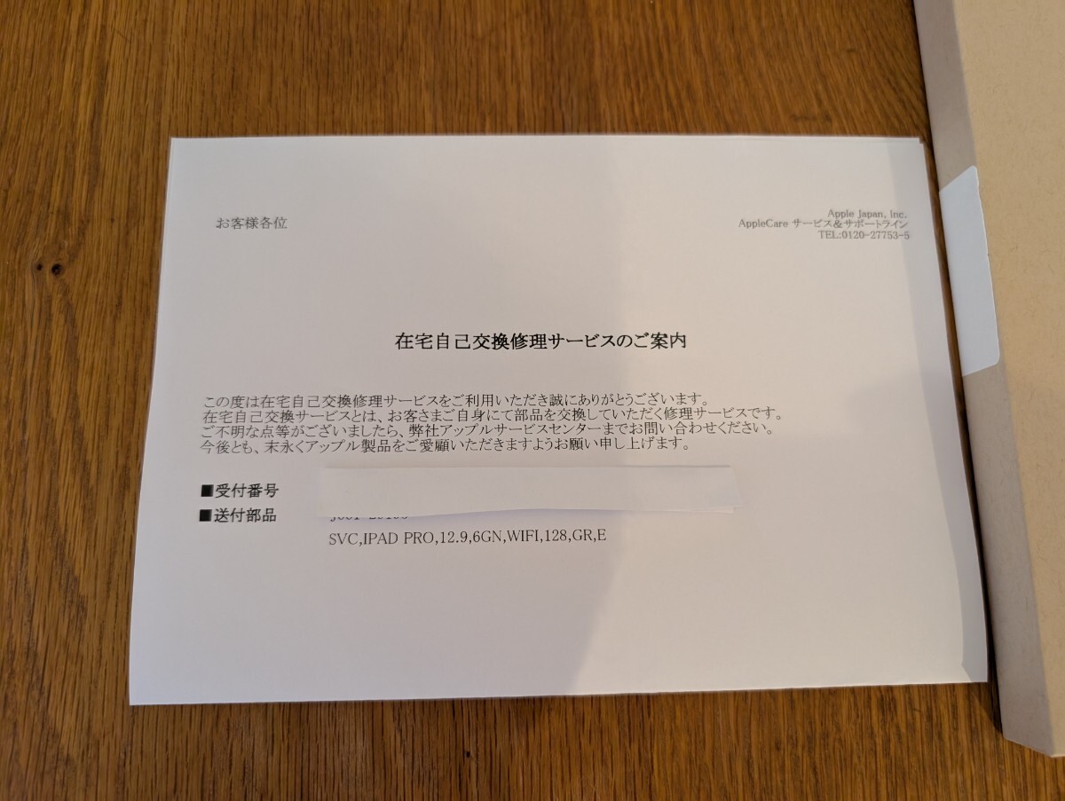 故障したので、アップルケアを申請したら新品が送られてきました。