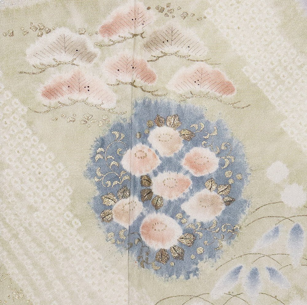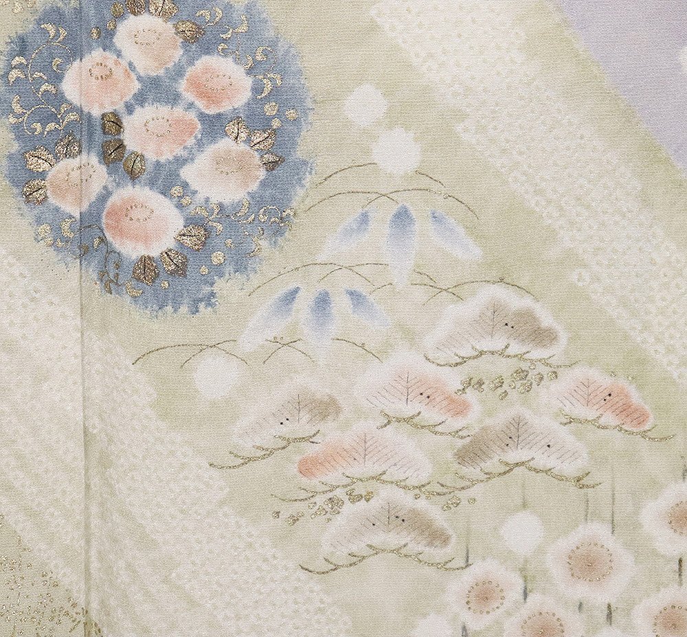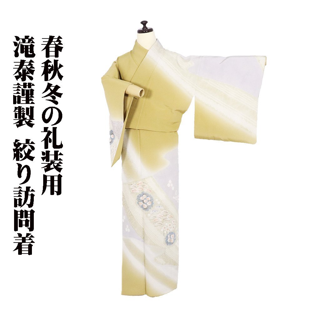| 色・柄 | 滝泰謹製 絞り訪問着 袷 丹後縮緬地 黄土色(黄朽葉色)・薄グレー(灰青色)・ピンク(紫水晶)・緑(花浅葱色)・薄緑(裏葉柳色)地 絞り・松竹梅・七宝文 (写真では上手く色が出ない場合があります。ご了承下さい) |