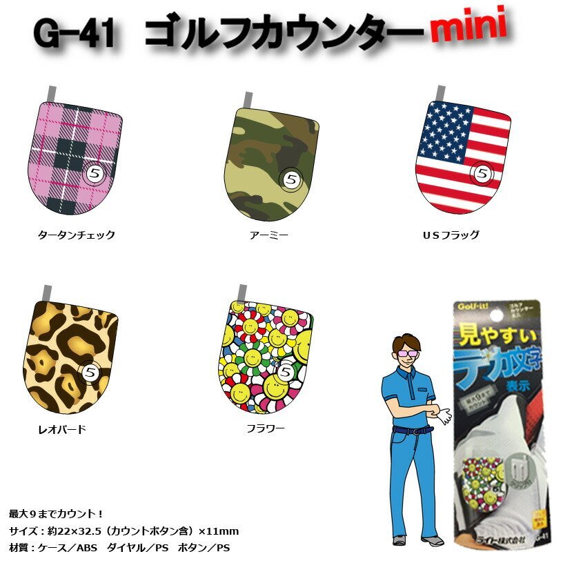 見やすいデカ文字表示のスコアカウンター!! ・最大9までカウントできます。・キャップ、グローブ、ベルト等にクリップで取り付け可能で、プレーの妨げにならない小型・軽量。・クリップ式でベルトやグローブに取り付け可能ミニサイズでグローブのべろにも着けられます! カウント忘れないように! コンパクト設計で使い勝手が良く老若男女に幅広く支持されています。最大9までカウント! 【使用方法】1.ホールスタート前に必ずスコアが0の表示になっているか確認してください。2.カウントボタンを1回押すと1目盛づつカウントします。サイズ:約22×32.5(カウントボタン含)×11mm 材質:ケース/ABS ダイヤル/PS ボタン/PS カラー:タータンチェック、アーミー、USフラッグ、レオパード、フラワー