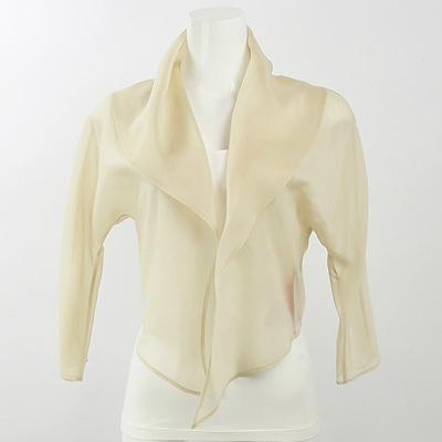 | シルク素材のはりのあるお生地の高級感のあるボレロ☆ 大きめお襟でオーガンジーなので、ワンピースなどにプラスして パーティーなどでいかがでしょうか? 薄いベージュなので、コーディネートしやすいですよ。 ご使用感なくきれいです。紙タグあり。 実寸 裄丈63cm 着丈40cm バスト94cm 【サイズ】:(38) 【素 材】:(絹100%) 【 色 】:(薄ベージュ) 【程 度】:(A) 管理番号 15150119-007 102 023 | ||||