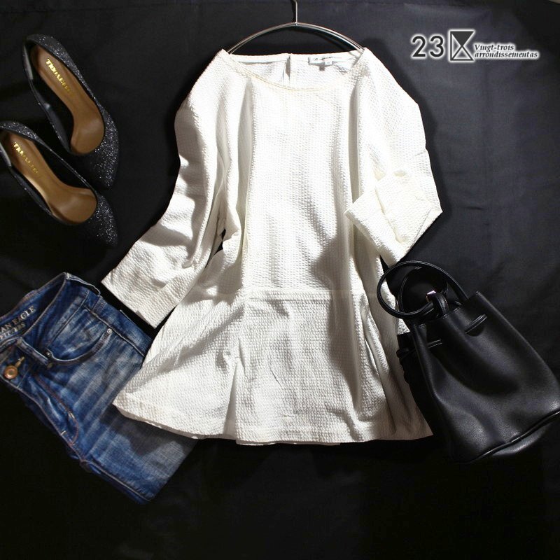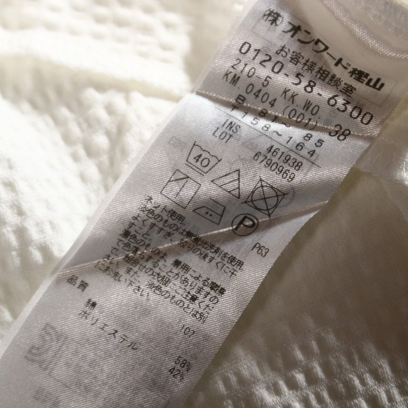美品 23区 株) オンワード樫山 春 夏 ぷくぷく ワッフル ストレッチ ジャージ― 七分袖 カットソー 9号 38 ホワイト 白