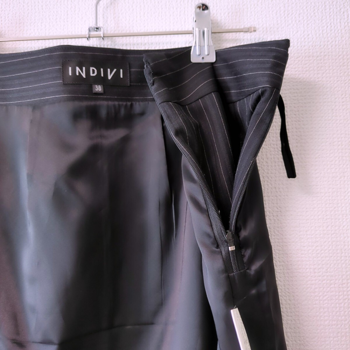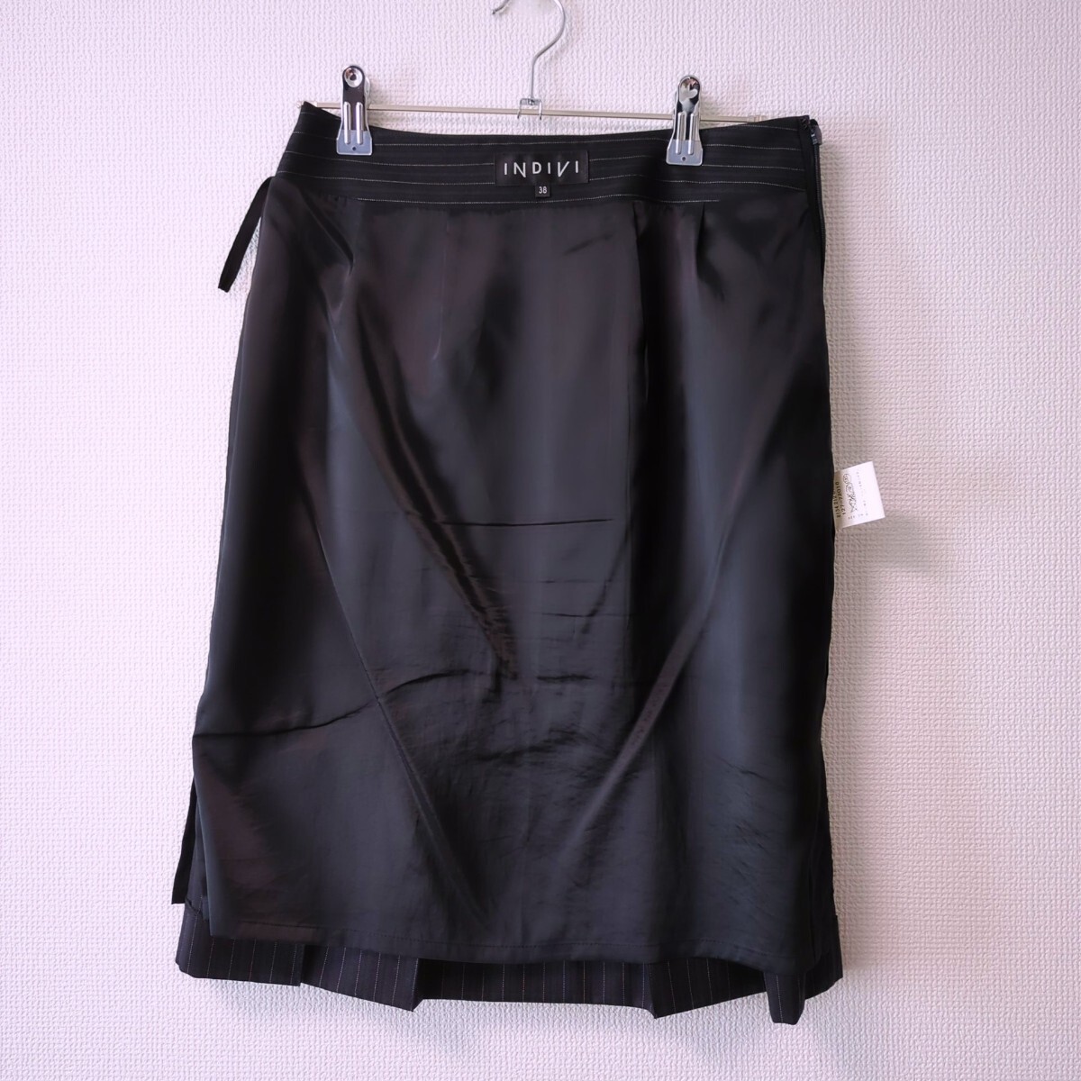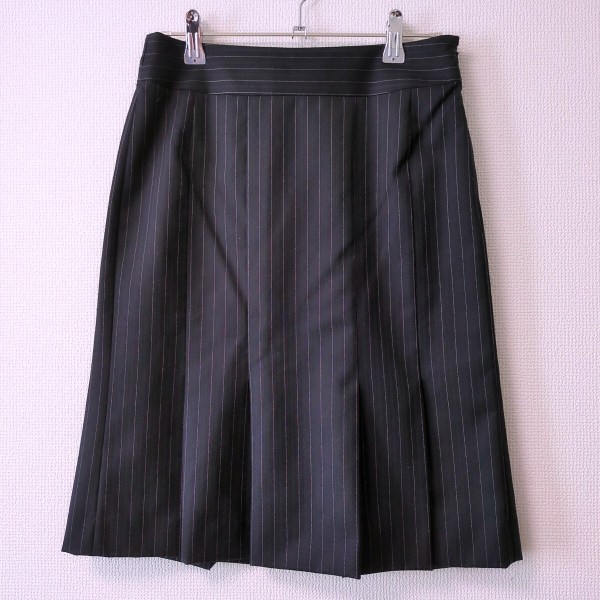 美品 INDIVI インディヴィ ストライプ ひだスカート レディース Mサイズ オフィスコーデ スーツ キレイめ シンプル