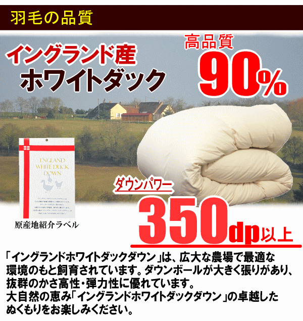 ■中身:イングランド産ホワイトダックダウン90% フェザー10%