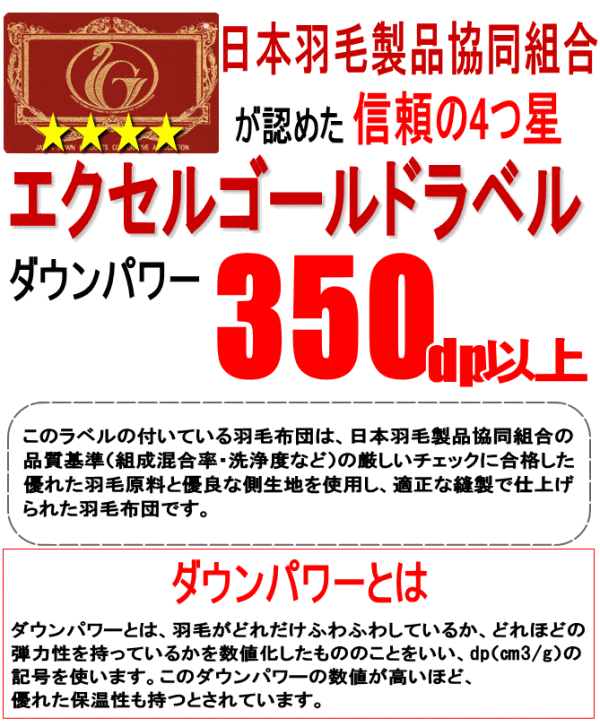 ■仕様:ダウンパワー350dp以上、エクセルゴールドラベル