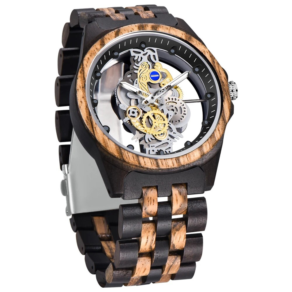 Watch 腕時計 新品 未使用 ウォッチ クォーツ メンズ アナログ 木製 wood スケルトン 透明 ゴージャス ビジネス 防水 耐衝撃 c5436