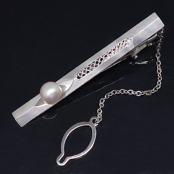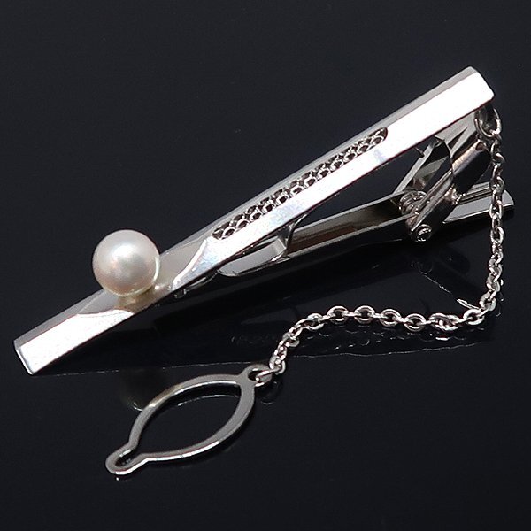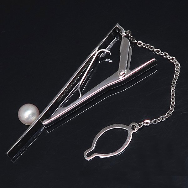DKG★送料無料★ SILVER シルバー パール タイクリップ 真珠 タイピン 銀 ネクタイピン 323