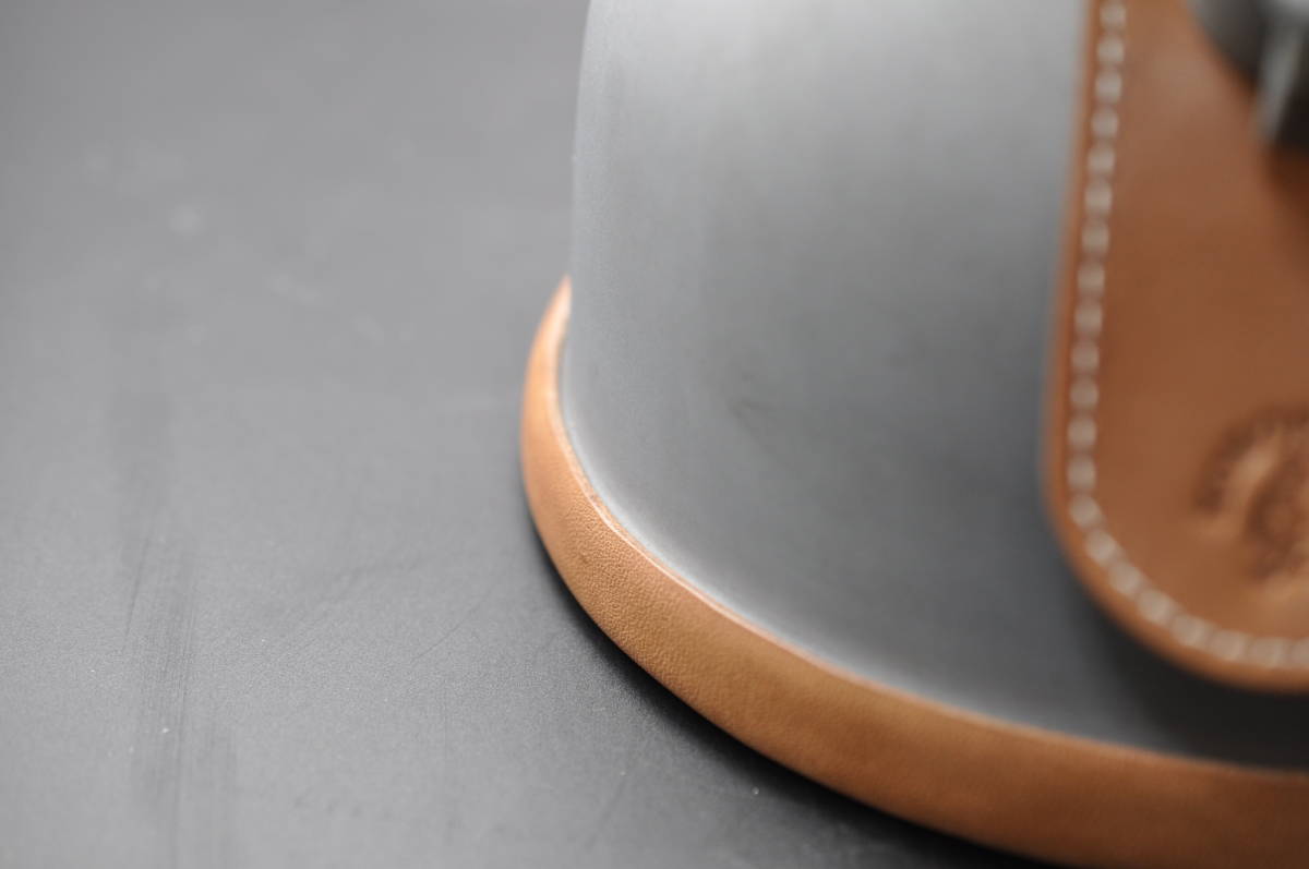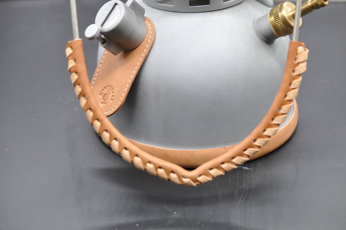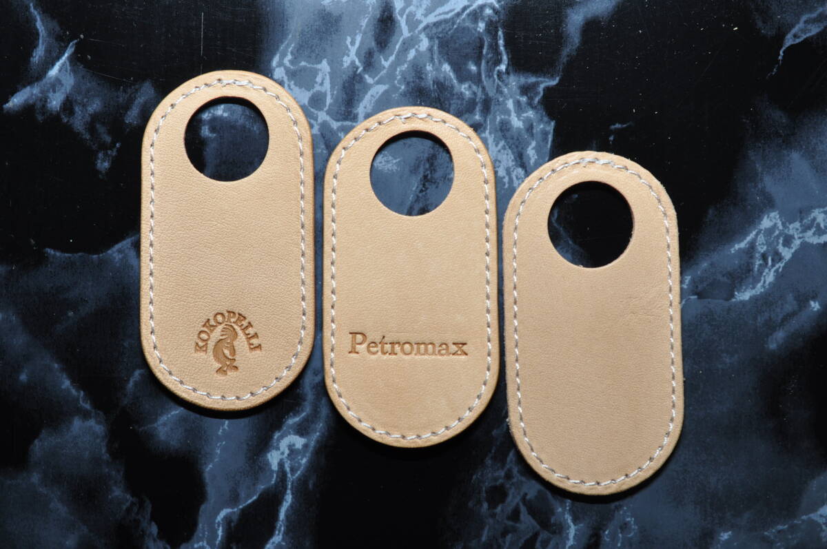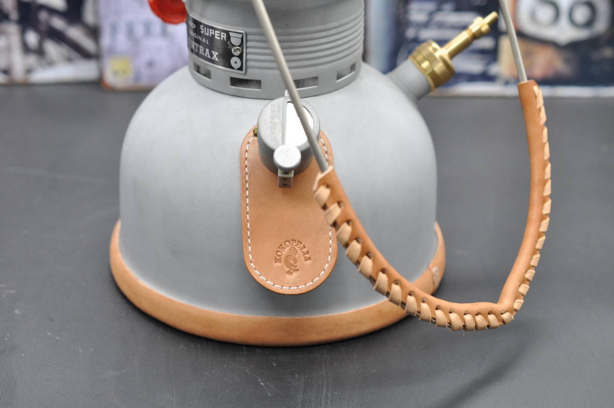 素材はタンニンで鞣した革好きには堪らない栃木ワイルドヌメ(ナチュラル)で作ったペトロマックスHK500用のリムカバー(リムガード)、ベイルカバー、給油口エプロンのカスタム3点セットです。★大変心苦しいのですが、革材料の高騰に伴い値上げさせていただきました。