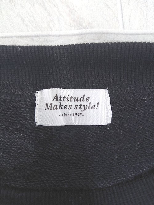 ◇ ⊇ ATTITUDE MAKES STYLE ショート丈 長袖 プルオーバー スウェット サイズF ブラック レディース E