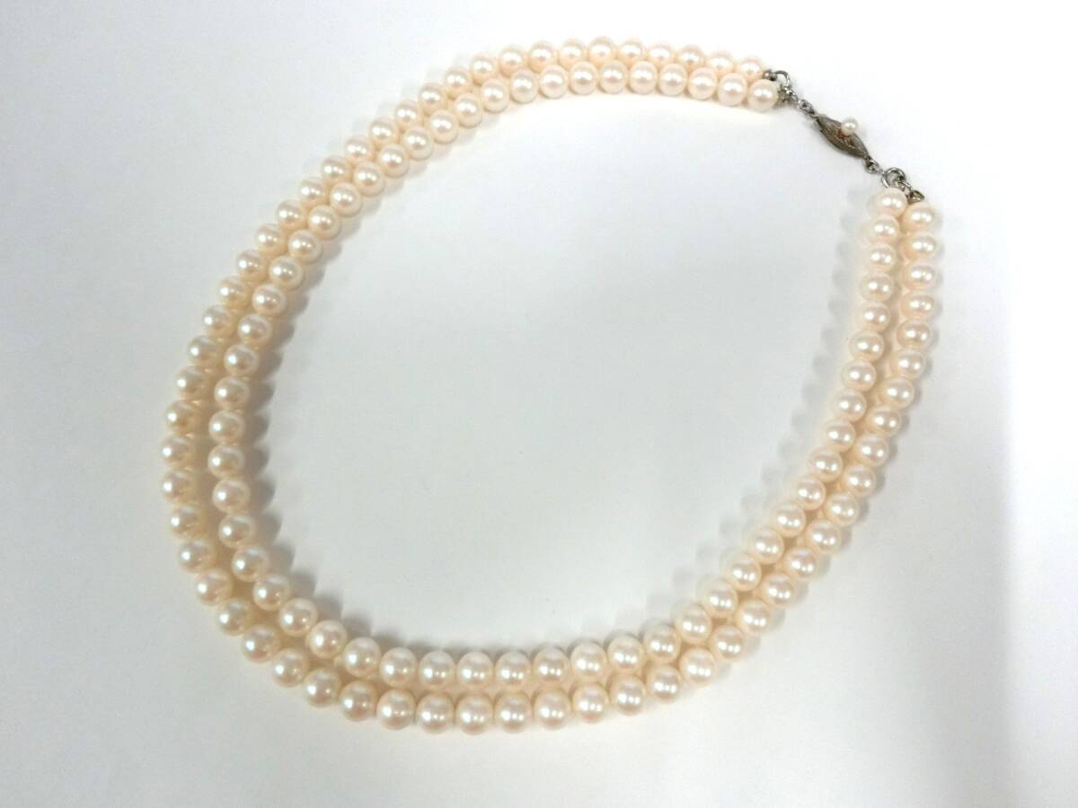 | 45553◆SILVER留め具 2連パールネックレス 6.5mm | ||