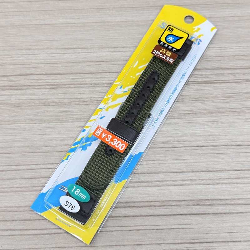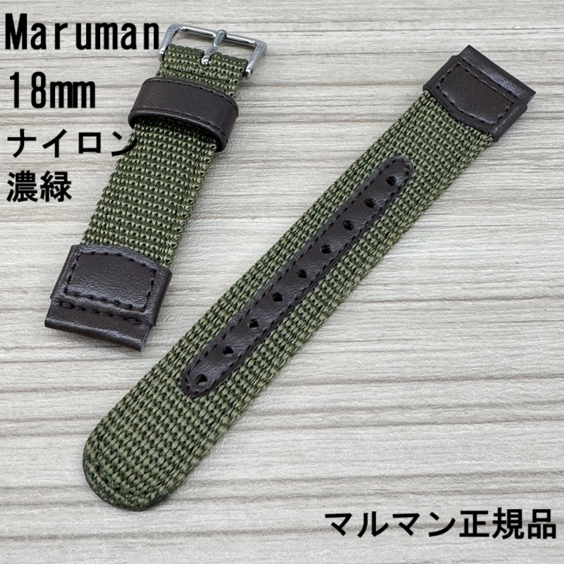送料無料★特価 新品★Maruman 時計ベルト ナイロンバンド 濃緑 カーキ グリーン 18mm★マルマン正規品 定価税込3,300円