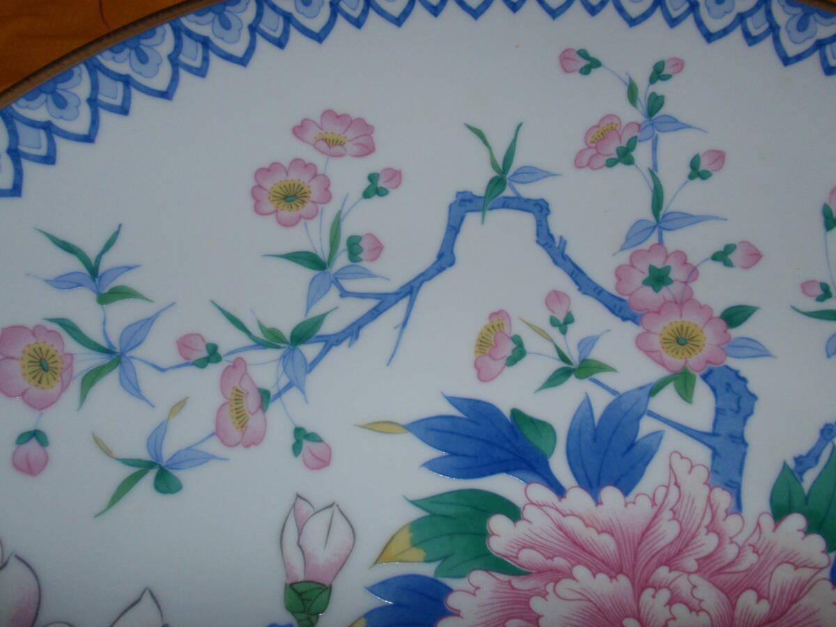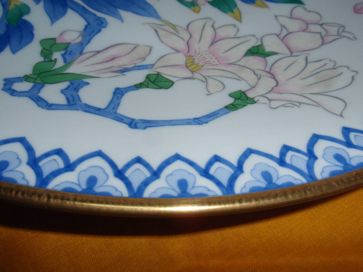 伝統的な美しさを湛えた花々は37種の釉彩をもって描かれ、縁飾りには24金がほどこされています。