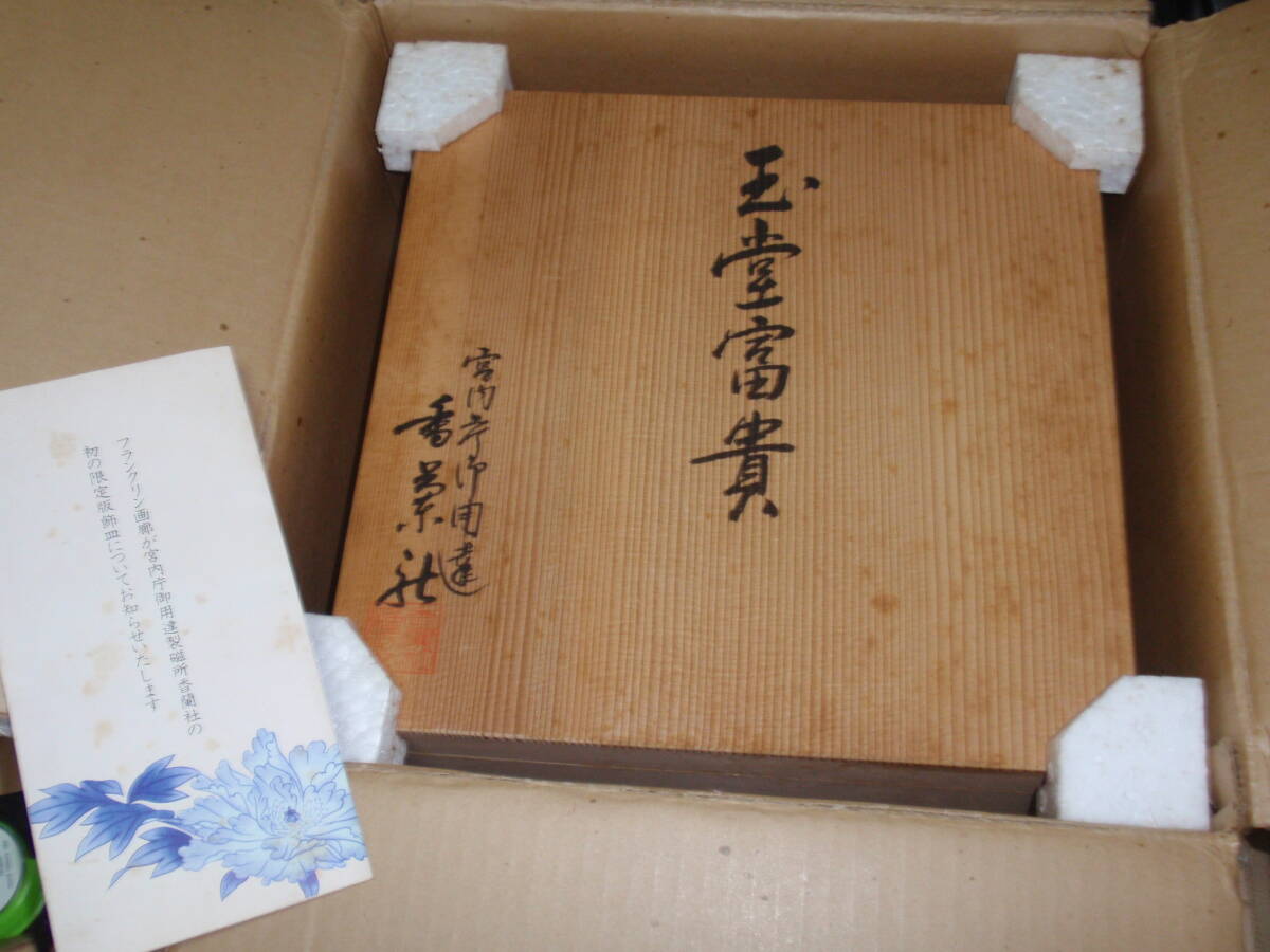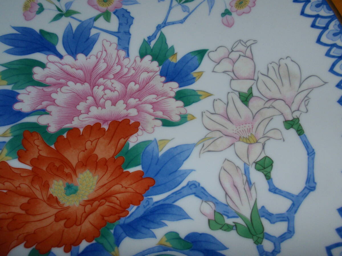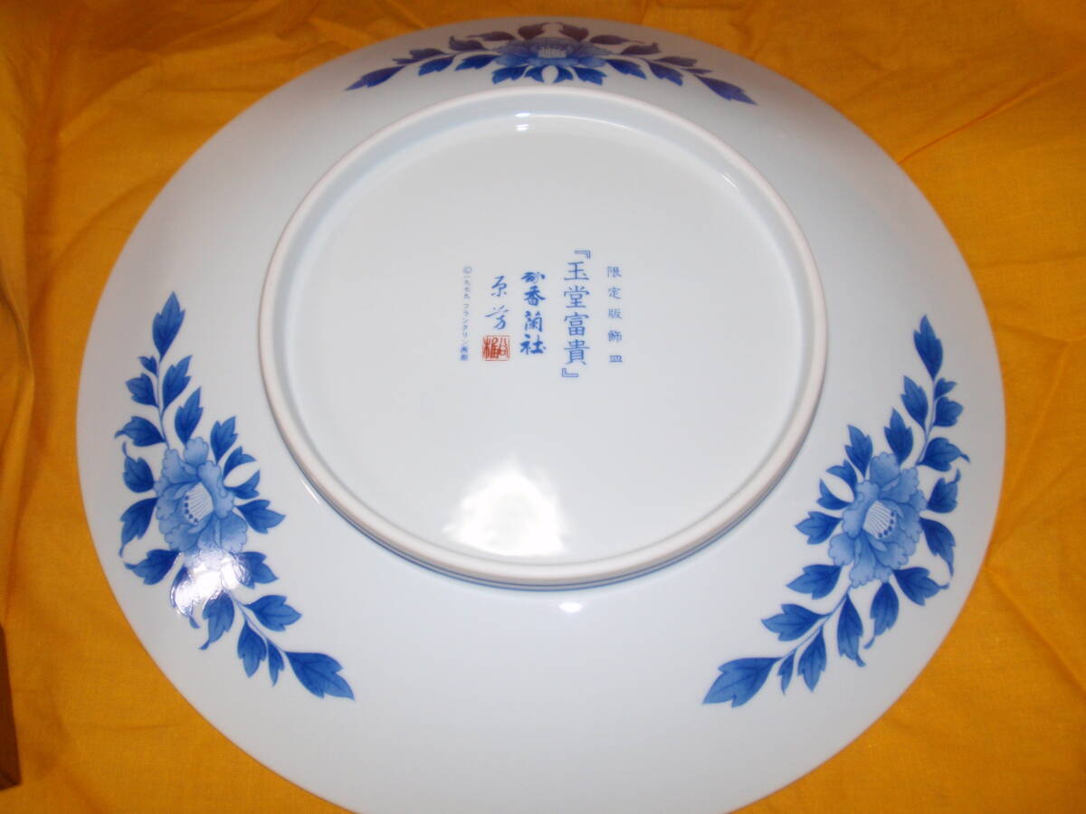 有田焼【香蘭社】宮内庁御用達 フランクリン画廊 限定【玉堂富貴】飾皿★木箱付き★皿立てつき