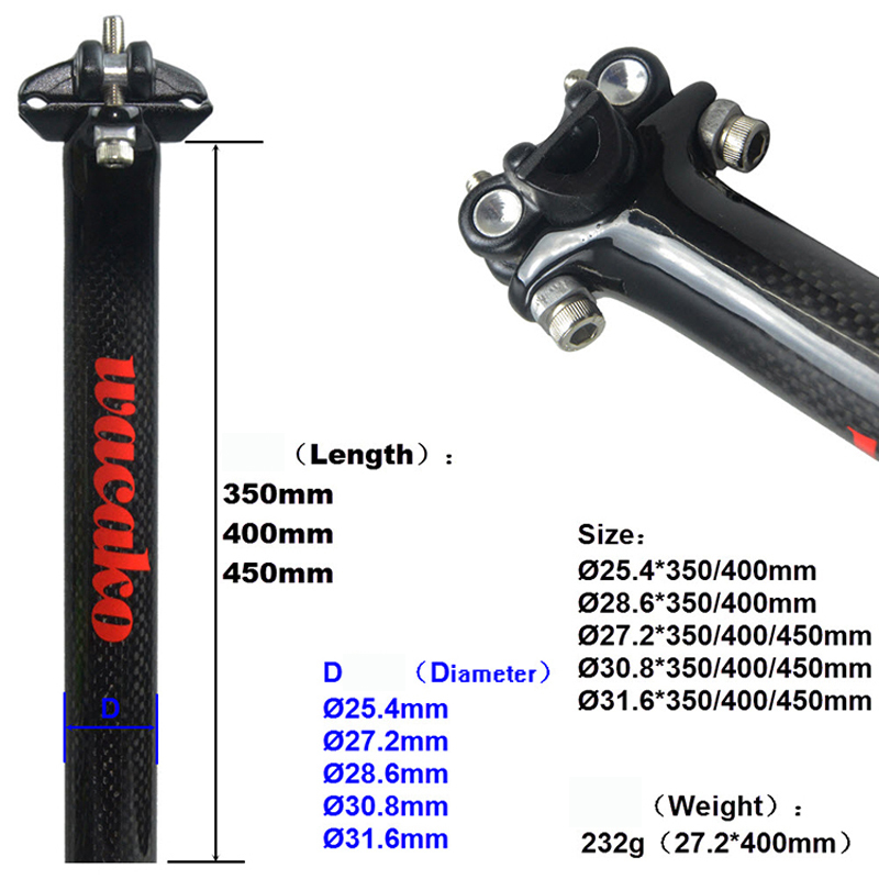 wacakoカーボンシートポスト サイズ多種 ロードバイクシートポスト 自転車シートポスト MTBシートピラー wsp17