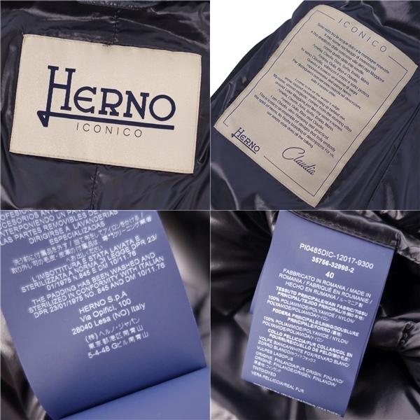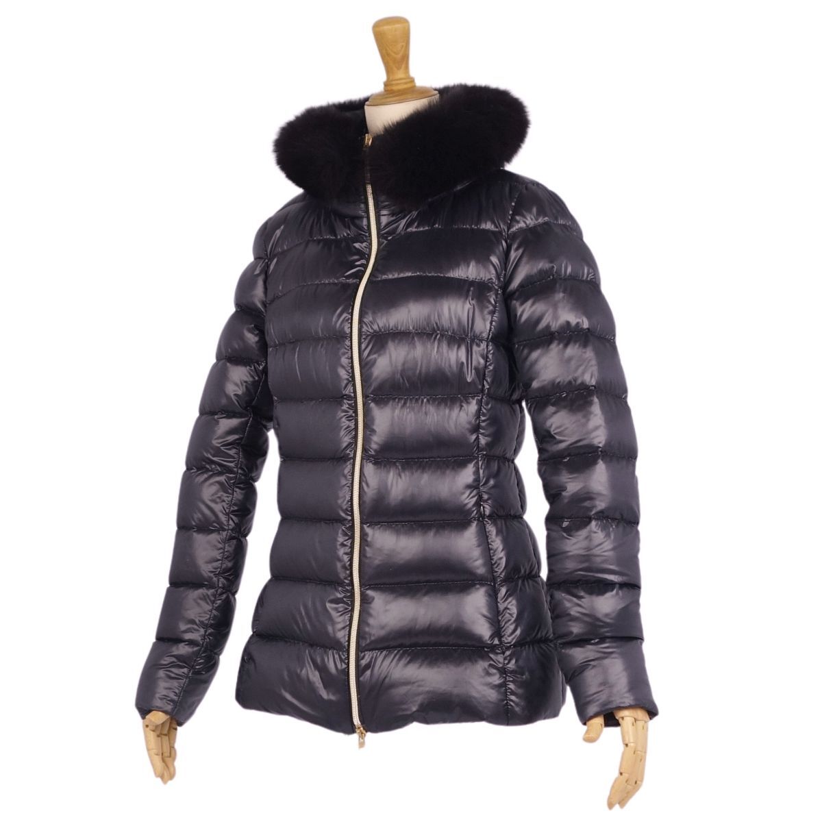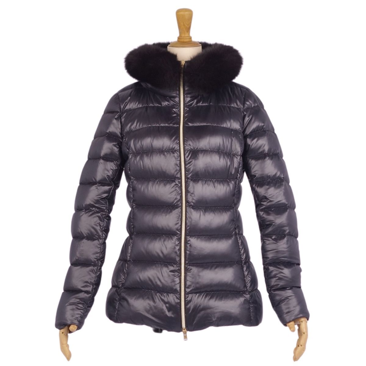 | 美品 ヘルノ HERNO ジャケット CLAUDIA クラウディア ダウンジャケット ナイロン フォックスファー 40 ダークネイビー |