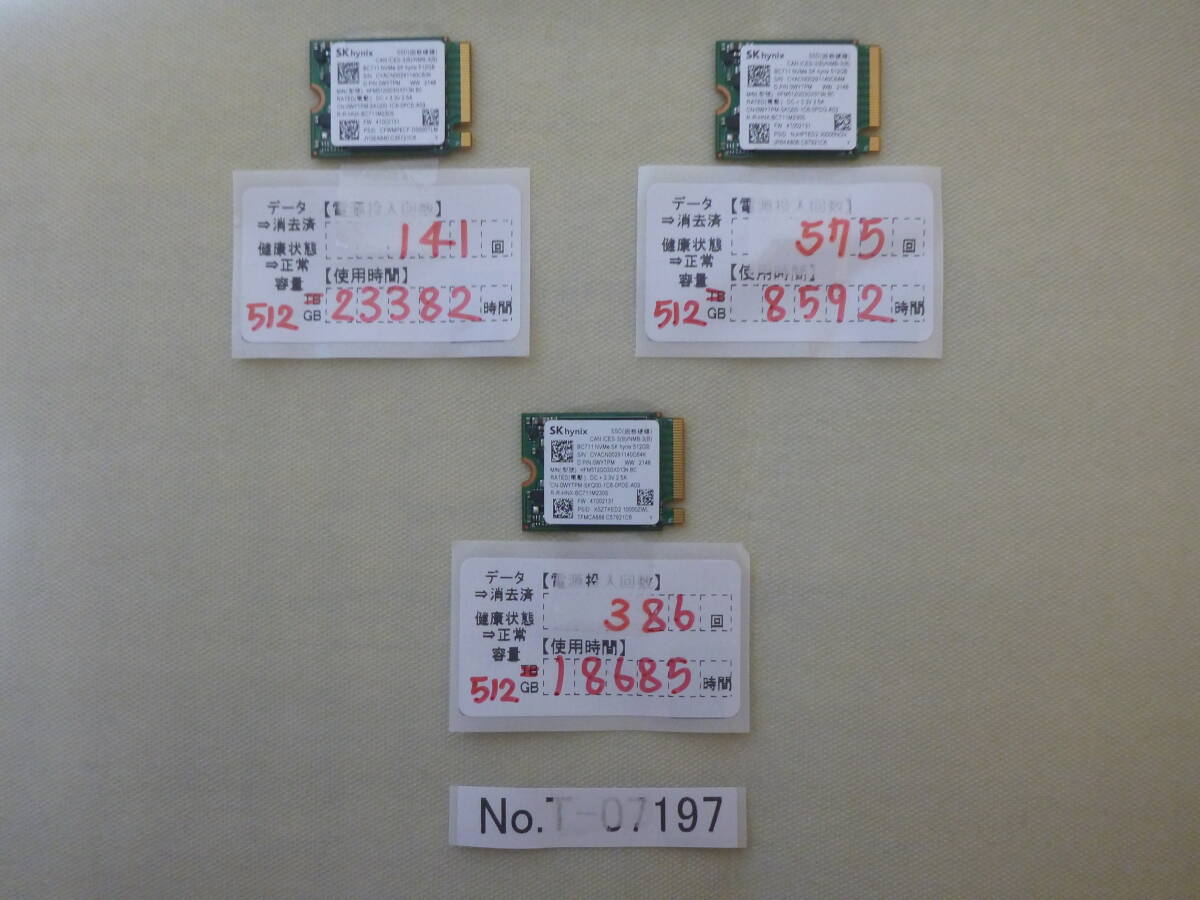 T-07197 / SSD / SKhynix / M.2 2230 / NVMe / 512GB / 3個セット / ゆうパケット / 消去済み / ジャンク扱い | |||