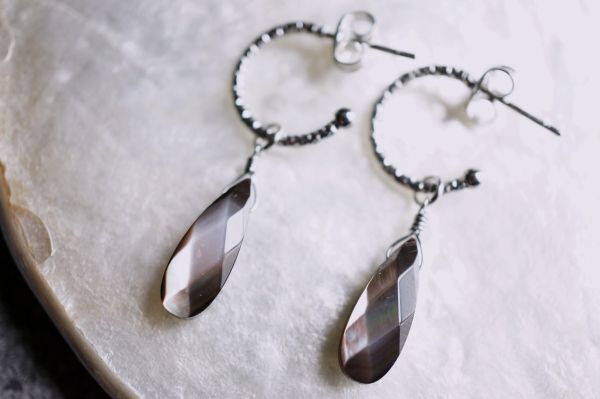 サージカルステンレス ピアス 508 黑蝶ブラックシェル ハーフフープピアス 金属アレルギー対応金具使用 ブラックジュエリー