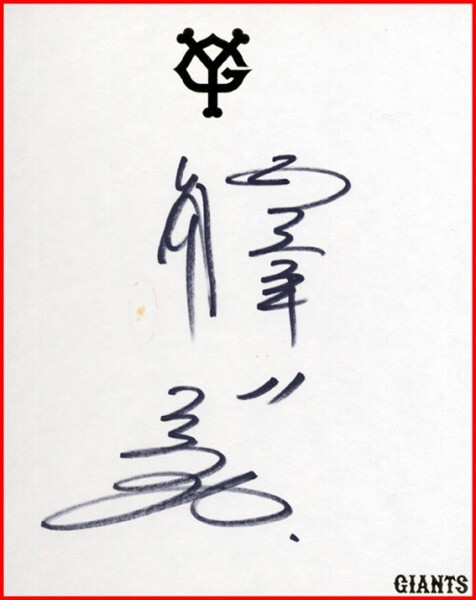 ・ジャイアンツでクローザーとして活躍した角三男(角盈男)投手の直筆サイン色紙です。