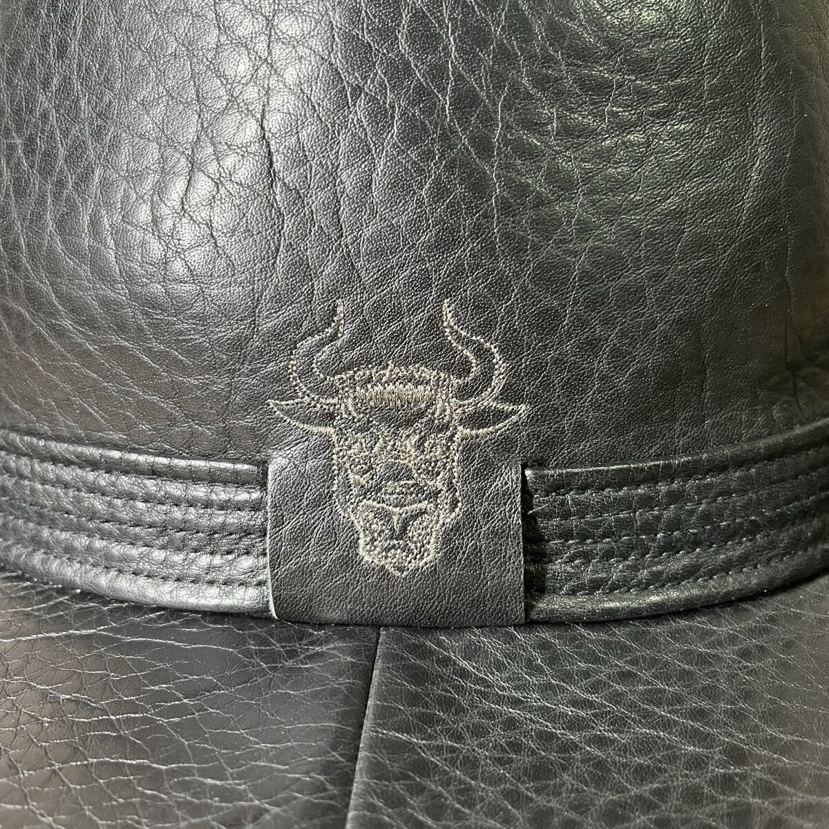 フロント部分には、ブランドを象徴する雄牛のエンブレムが刺繍されており、細部までこだわりが感じられるデザインです。