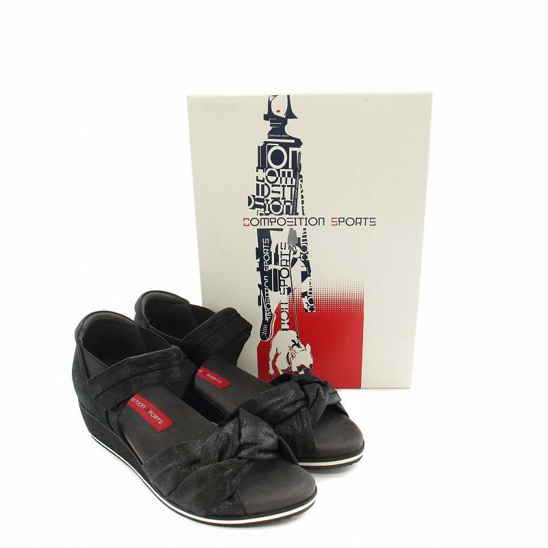 未使用品 コンポジション スポーツ COMPOSITION SPORTS スタイリッシュコンフォートサンダル ウエッジソール 23.0cm 黒 1114 レディース