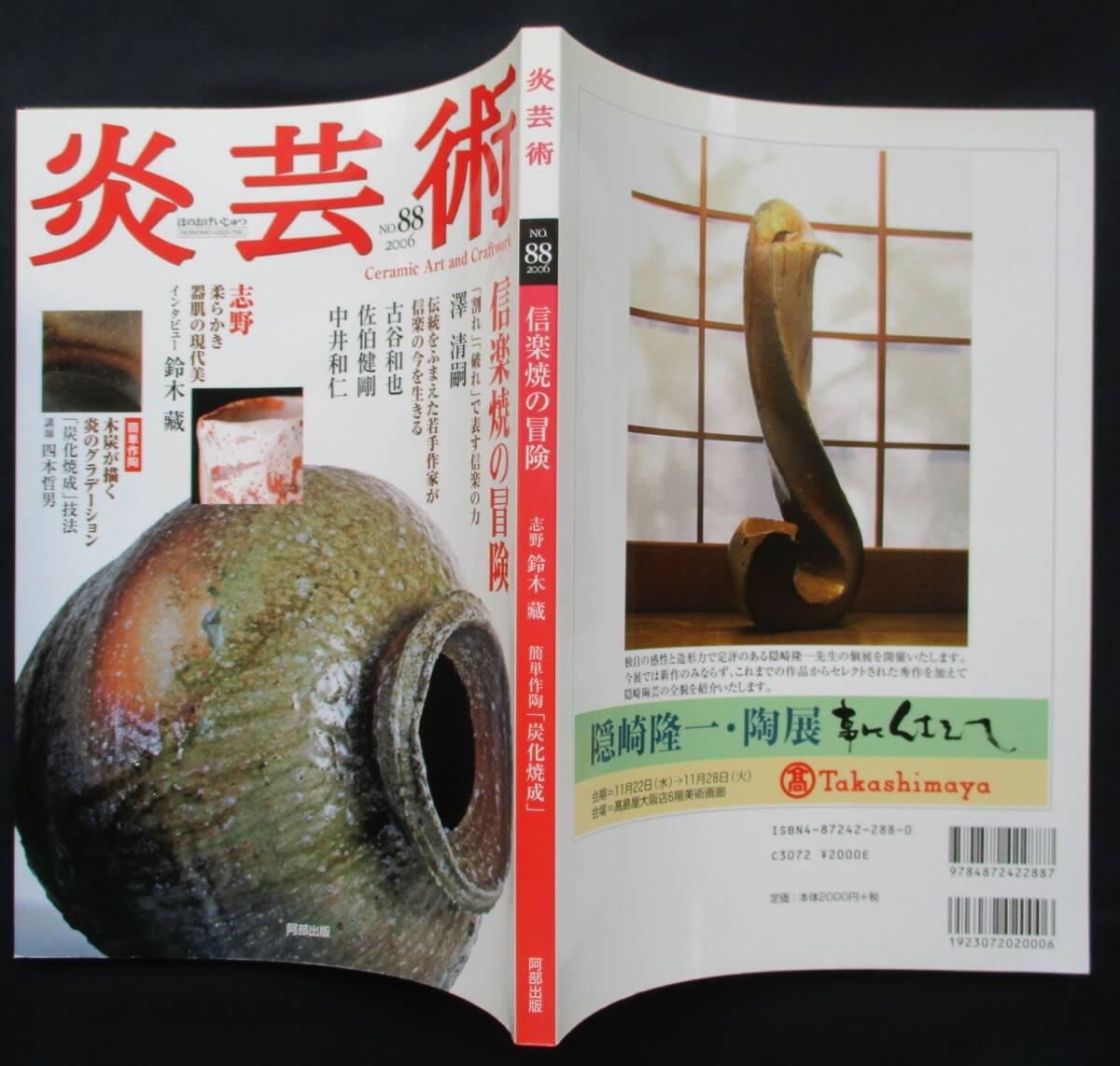 書棚整理/ 炎芸術 No.88 2006●特集 信楽焼の冒険 伝統と今の調和・澤清嗣 新しい信楽の徴・古谷和也/佐伯健剛他 阿部出版 定価:2000円