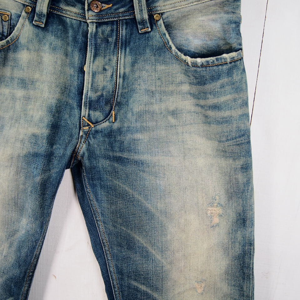 所々にダメージ加工の若干のダメージの進行があり、多少のUSED感はございますが、まだまだご着用可能です。