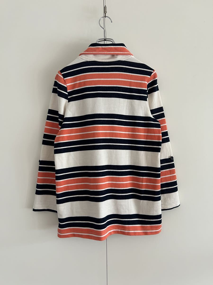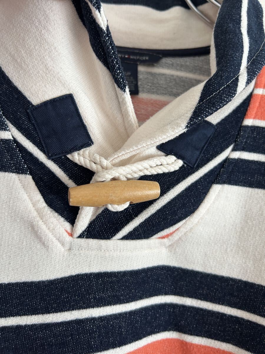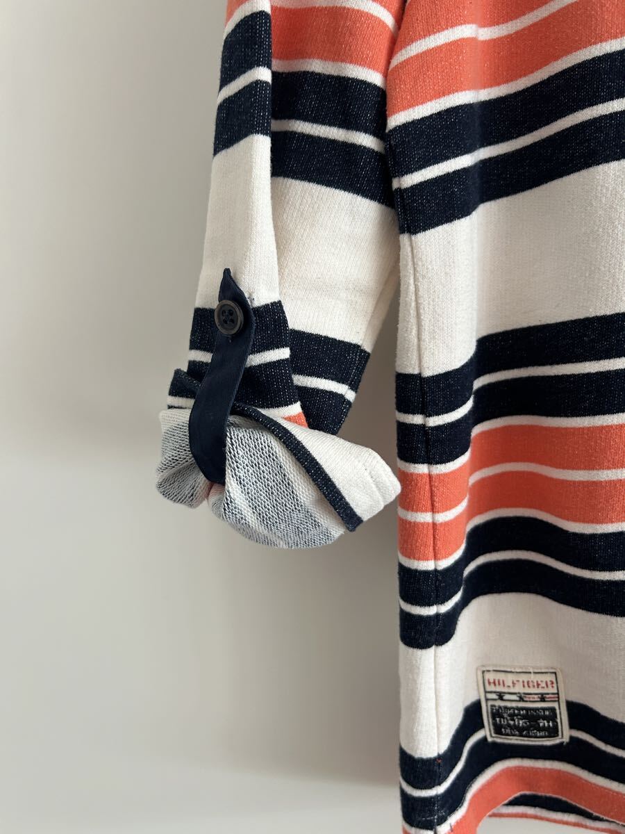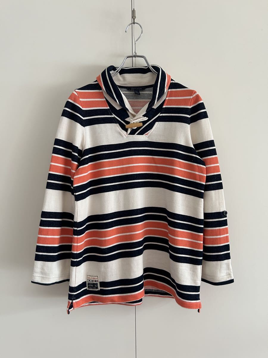 トミーらしいマルチボーダー柄が映えるプルオーバースキッパートップス。ロールアップできる袖タブ付き仕様やトグル風デザインが、カジュアルながら奥行きあるスタイルを作ってくれる一枚です。