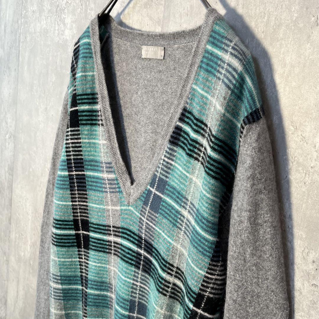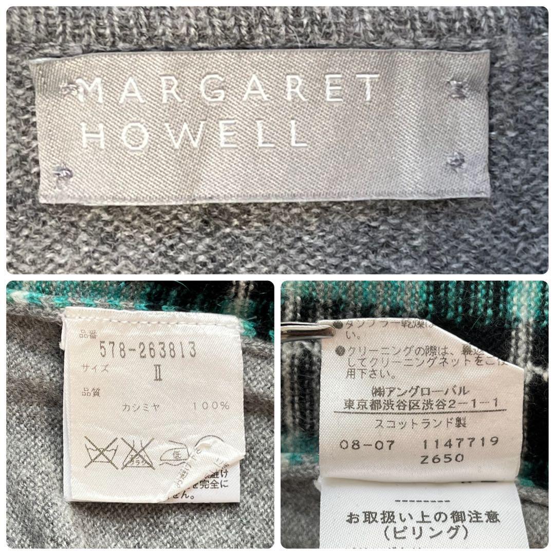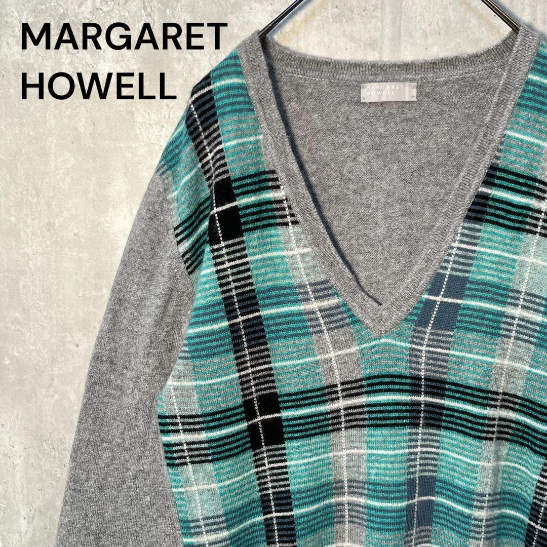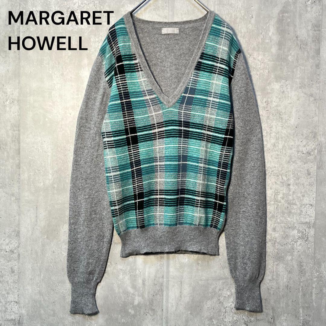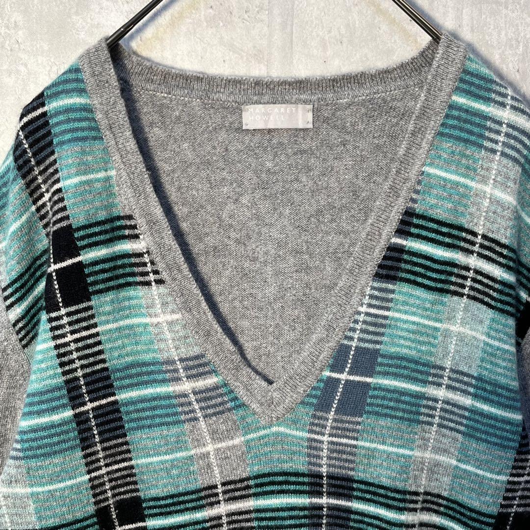 スコットランド製☆ MARGARET HOWELL マーガレットハウエル カシミヤ100% 好配色チェック柄 ニット セーター