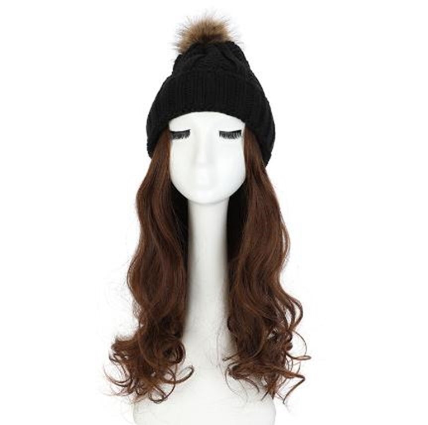 ウィッグ付きニット帽 ニット帽/ブラック ウィッグカラー/D ロングヘアー イメチェン 髪色チェンジ コスプレ