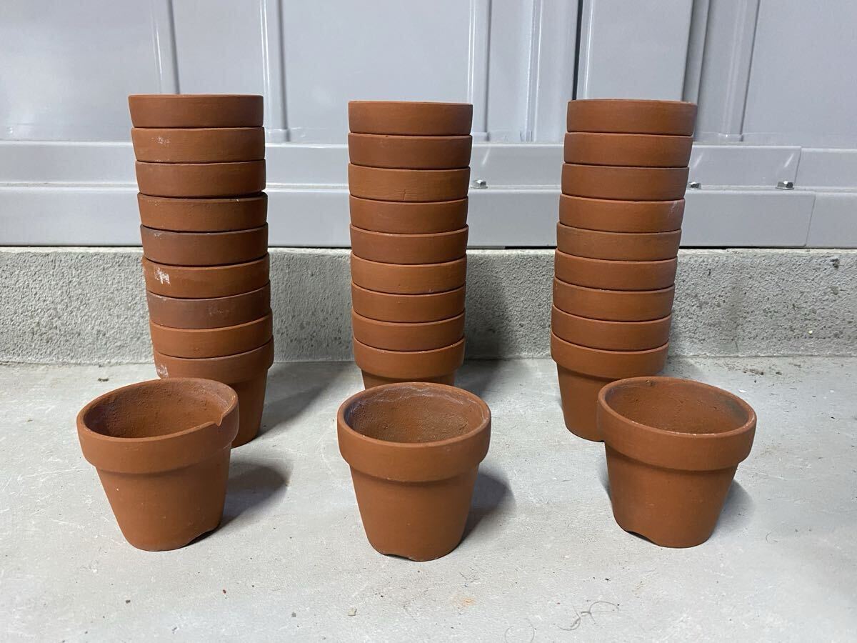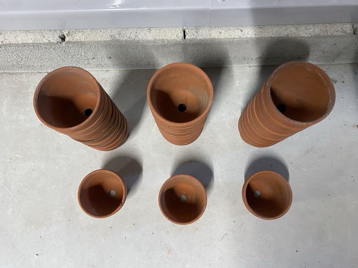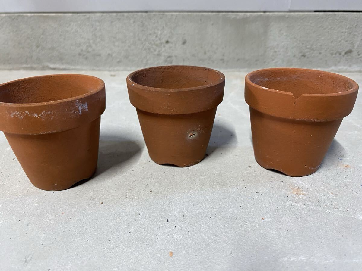 欠け傷やひび割れ傷、擦り傷があり穴があいている鉢もあります。屋外で保管していたので水あかや土汚れが多少あります。詳しくは画像をご確認ください。