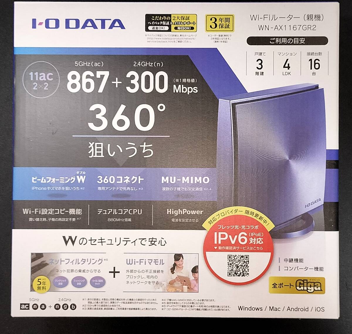 WN-AX1167GR2 Wi-Fiルーター I-O DATA