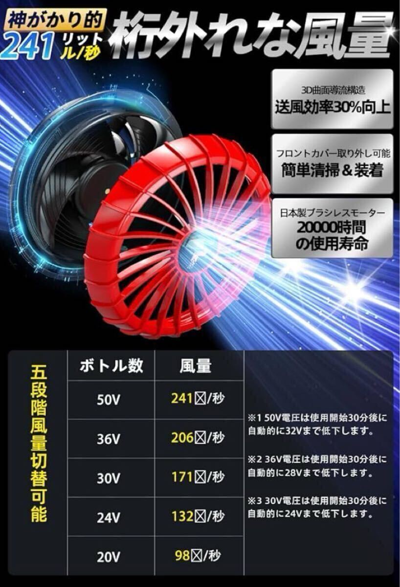 空調作業服用 ファンバッテリーセットの冷却効果を最大限に引き出す業界初の50V超高電圧出力を実現。最大風量241L/秒・連続28時間駆動の圧倒的性能に加え、洗練されたデザイン性を兼ね備えた空調作業ウェア用ファンバッテリーセットが遂に登場。この夏の酷暑を、従来にない快適さで乗り切りましょう。日本仕様の安全基準をクリアした信頼設計で、屋外作業からレジャーまで幅広いシーンで活躍します。