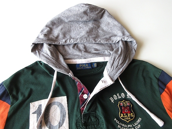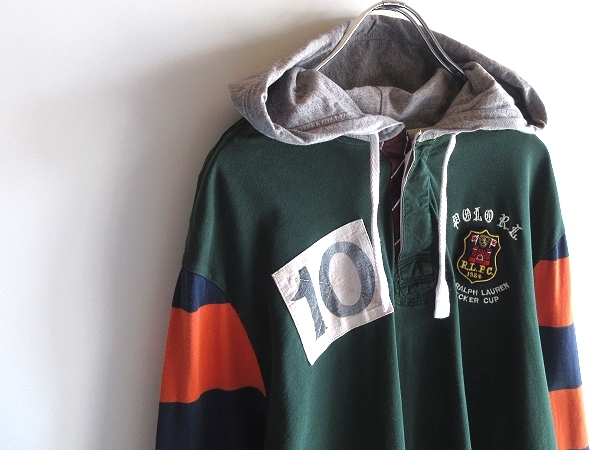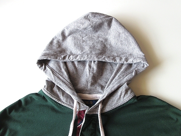 ラルフローレンのパーカー。ラガーシャツをベースにしたデザインで、コットンのカットソー生地を使用しております。袖とフードの生地の切り替えが魅力。胸のロゴ刺繍とワッペンがさりげないアクセントになります。上質な素材使いと綺麗なシルエットで、様々なコーディネートにお使い頂ける一着です。