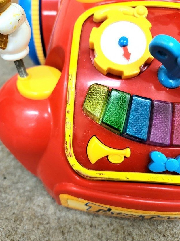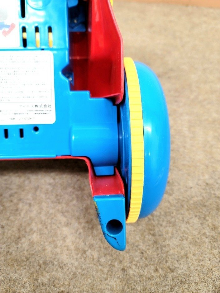 | 商品説明 おもちゃボードは3種類の電子音モードがあり、電子音に合わせて鍵盤が光ります。 足もと広々安全設計 足もとのスペースを広く取ることで快適歩行が出来るようになっています。 対象年齢 :8ヵ月から3歳まで 詳細 ●サイズ:縦38cm、横36.5cm、高さ42.5cm ●動 作:動作確認済み ●ランク:Dランク ●コンディション:正面部やタイヤ等全体的に傷、汚れあり タイヤに巻き込みあり |