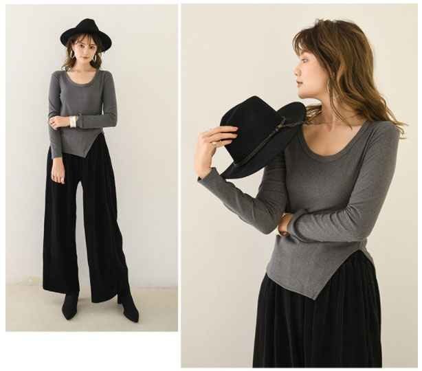 ◇サイドスリットの入ったシンプルデザインのラウンドネックプルオーバー。