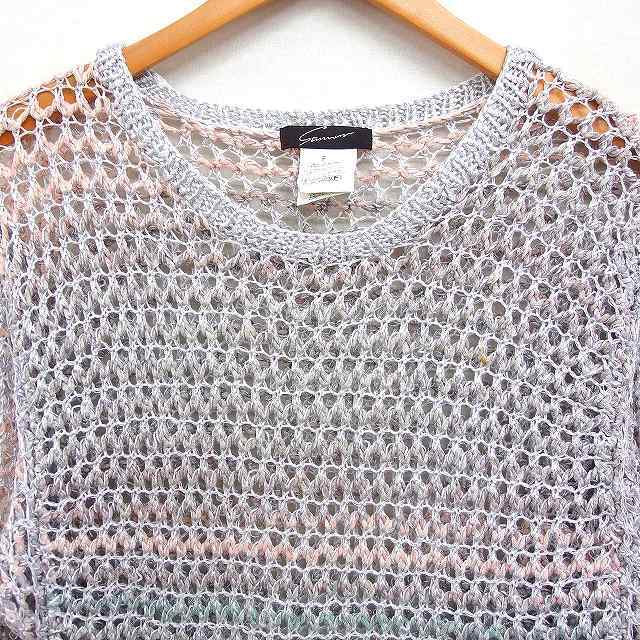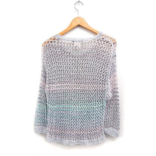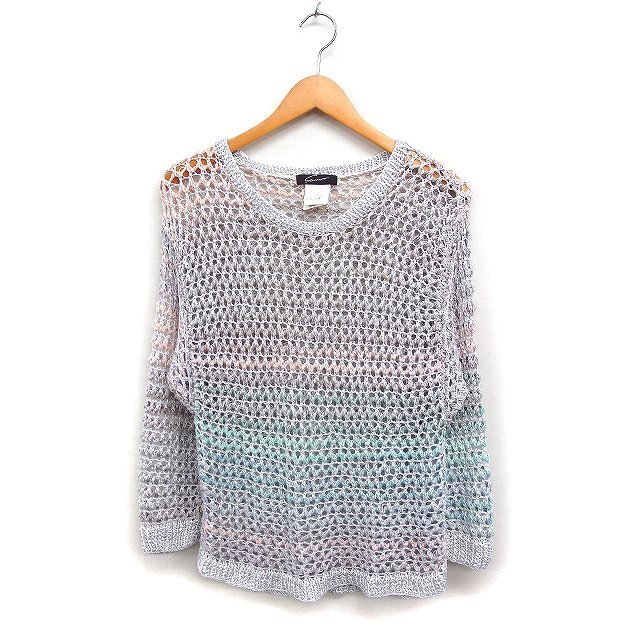 スタニングルアー STUNNING LURE 透かし編み ニット セーター 長袖 丸首 綿混 ラメ混 F ライトグレー /FT13 レディース