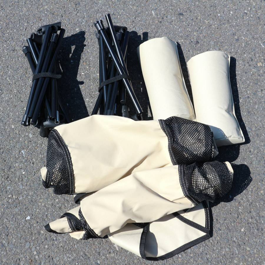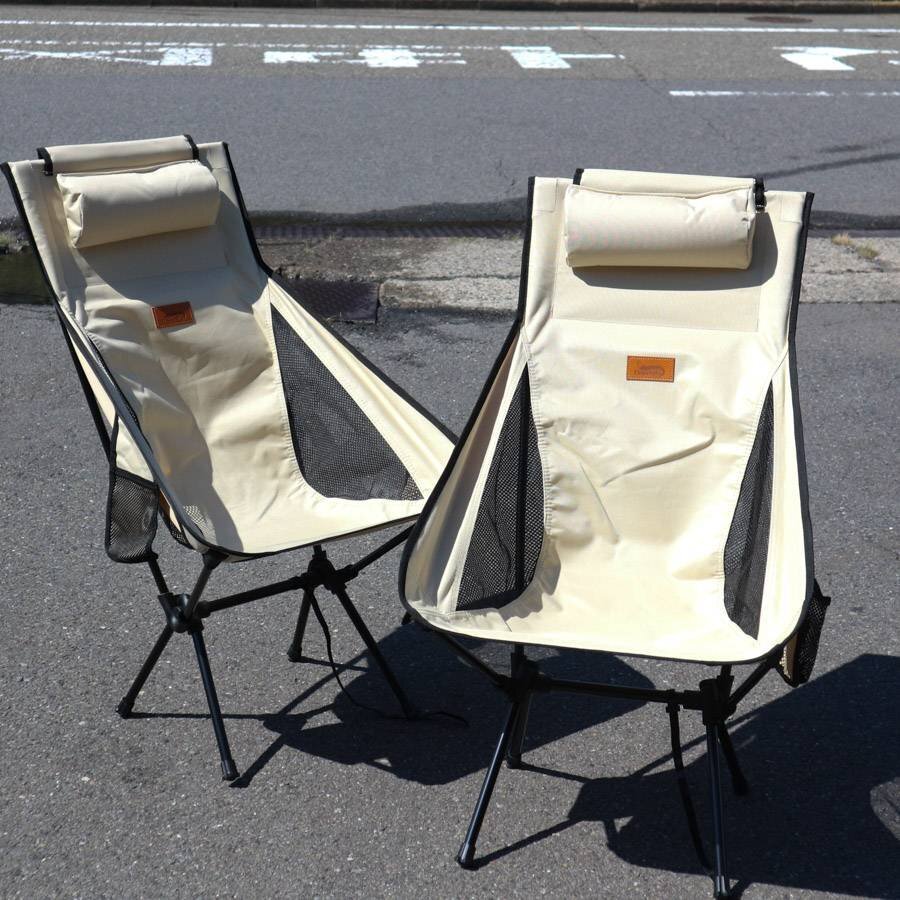 美品【2脚セット】DesertFox ハイバックチェア 枕・カップホルダー付き 軽量 ベージュ系 折りたたみ椅子 アウトドア キャンプ◆244f10