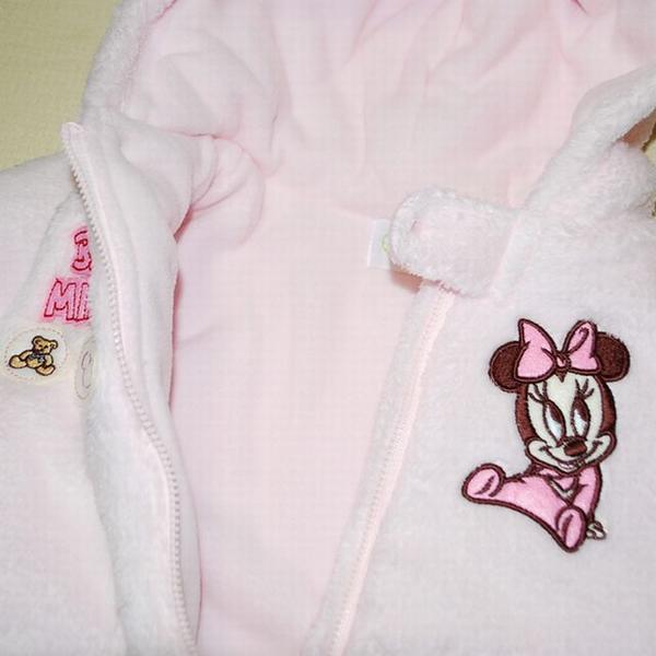 ミニーちゃんのあったかボアおくるみで、裏はやわらかフリースになっています。 | ||